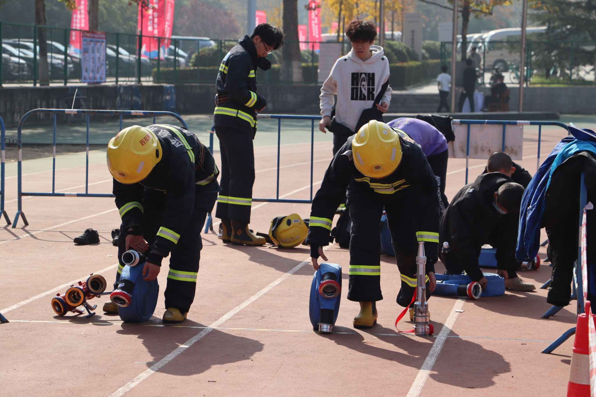 在备战期间,学生处和保卫处密切配合,从动员选拔、制定训练方案到组织强化练习,全程统筹推进。通过近一个月的强化训练,参赛选手掌握了基本的消防安全技能。
