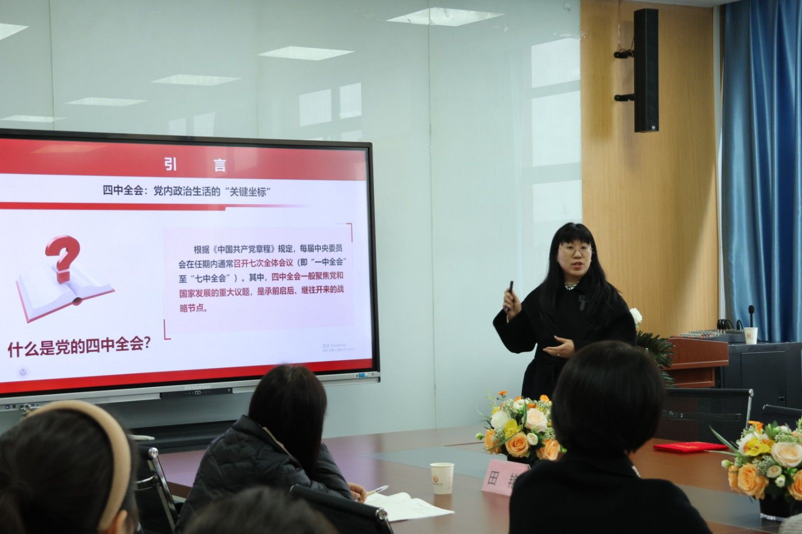 在理论宣讲会上,习近平新时代中国特色社会主义思想概论教研室教师张爱红博士以《深学笃行党的二十届四中全会精神,勇担教育强国使命》进行了专题宣讲,她系统阐释了全会的重大意义与核心要义,结合教育工作者的使命,深入讲解了将全会精神及时融入立德树人全过程的具体路径。