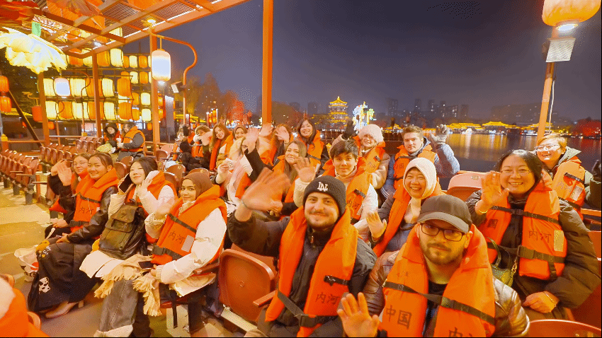 白天,留学生们乘花车览大唐芙蓉园的冬日盛景;夜晚,大家登上花船,开启了一段独特的水上赏灯之旅。土库曼斯坦青年何意表示:“这次灯会体验,让我感受到了中国春节的浓郁氛围和西安作为古都的独特韵味。我希望更多国际朋友能来这里,亲眼看看长安的美丽。”