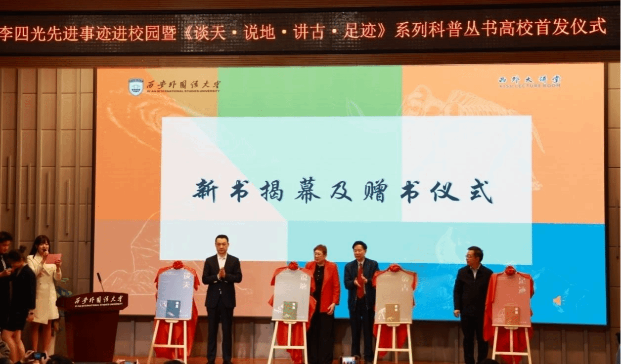 为深入贯彻落实科学家精神进校园的号召,推动科学文化融入高校育人体系, 4月8日,“李四光先进事迹进校园”暨《谈天·说地·讲古·足迹》科普丛书高校首发仪式在我校长安校区JA111报告厅举行。中国科学院院士舒德干,李四光外孙女、李四光纪念馆高级顾问邹宗平,中国大地出版传媒集团副总经理祁向雷,我校校长吴耀武、党委副书记王强等出席活动。
