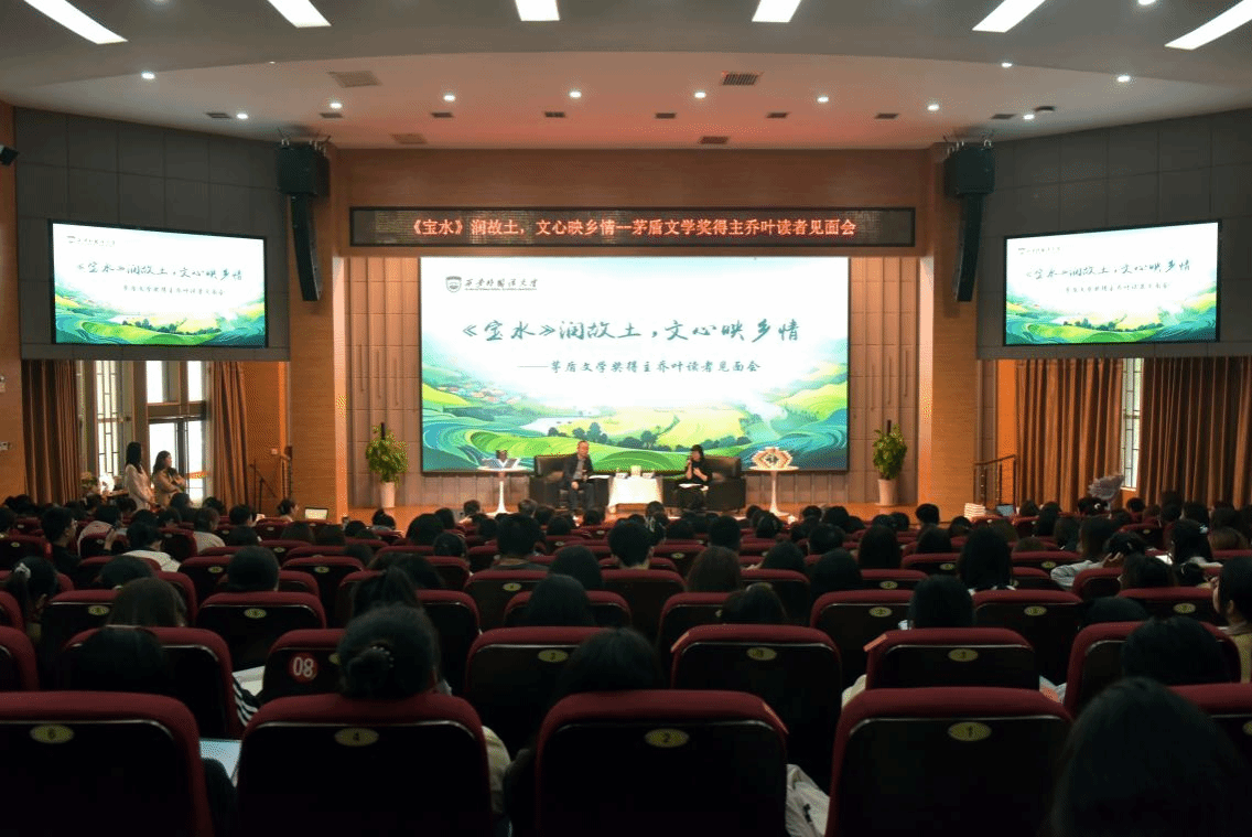 人间四月芳菲盛,恰是书香浸润时。近日,西安外国语大学第十五届图书文化节系列活动之“《宝水》润故土,文心映乡情——茅盾文学奖得主乔叶读者见面会”在JA111报告厅举行。第十一届茅盾文学奖得主、北京市作家协会副主席乔叶应邀出席。校党委书记刘振涛、校长吴耀武出席活动。全校师生代表及文学爱好者齐聚一堂,共同开启了一场关于乡土、文学与成长的深度对话。