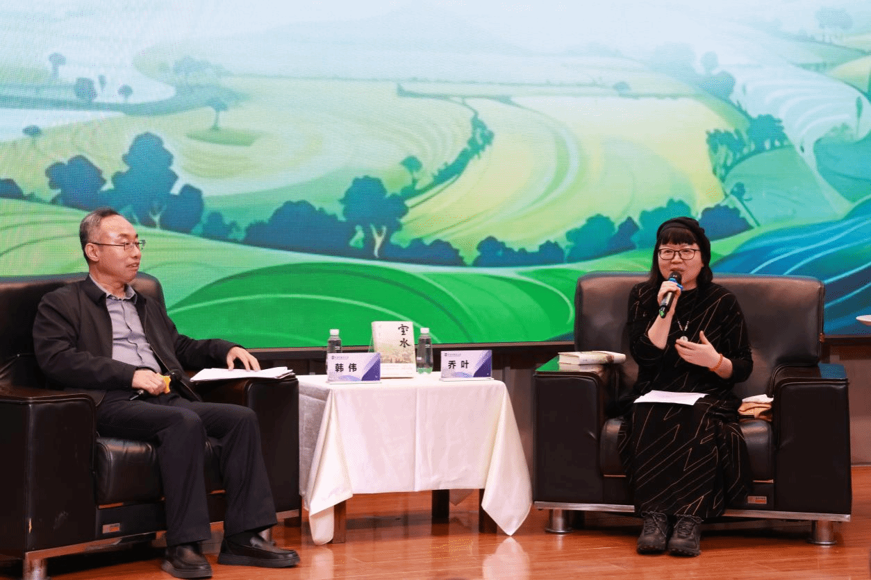 在深度对谈环节,中国语言文学学院院长韩伟与乔叶围绕文学、乡土与时代等主题展开了精彩对话。乔叶回顾了自己的创作历程,坦言写作是一场“从自我出发”的探索与疗愈之旅。她认为,即使乡村的形态在变迁,但“乡土中国”所承载的文化基底依然坚实,具有不可替代的精神价值。面对青年学子成长中的困惑,她分享了“向下扎根,向上生长”的人生信念,鼓励大家通过深度阅读经典来构建稳定的内心世界,在时代的浪潮中保持笃定的精神力量。