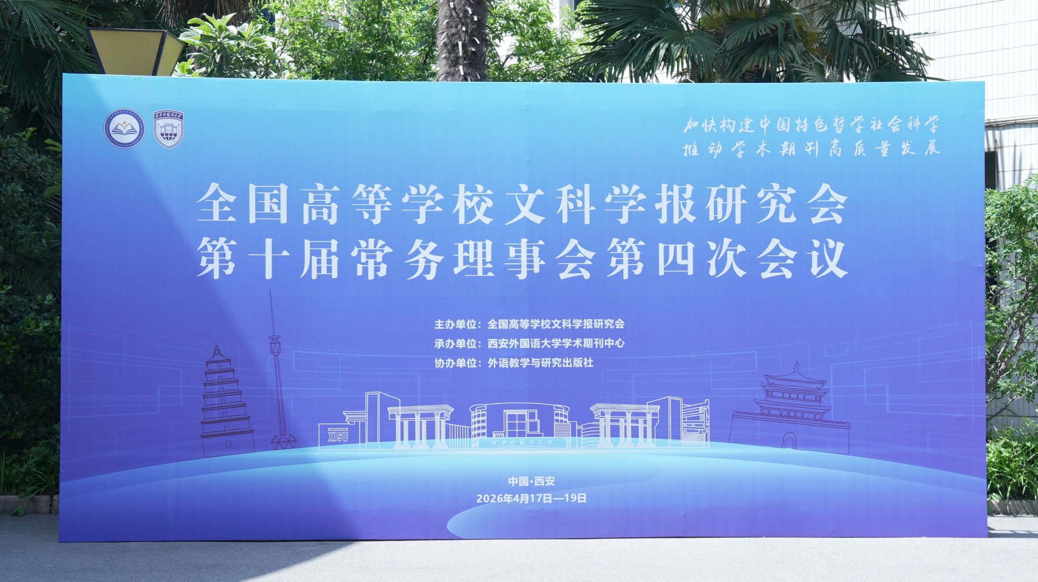2026年4月17日至19日,由全国高等学校文科学报研究会主办、西安外国语大学学术期刊中心承办、外语教学与研究出版社协办的全国高等学校文科学报研究会第十届常务理事会第四次会议在陕西西安召开。本次会议主题为“加快构建中国特色哲学社会科学,推动学术期刊高质量发展”,来自全国各地的常务理事代表、陕西省相关主管部门领导、研究会主要负责人及百余家期刊主编汇聚一堂,围绕学术期刊高质量发展之路、研究会各工作委员会工作部署及2026年上半年重点工作等议题展开深入研讨。