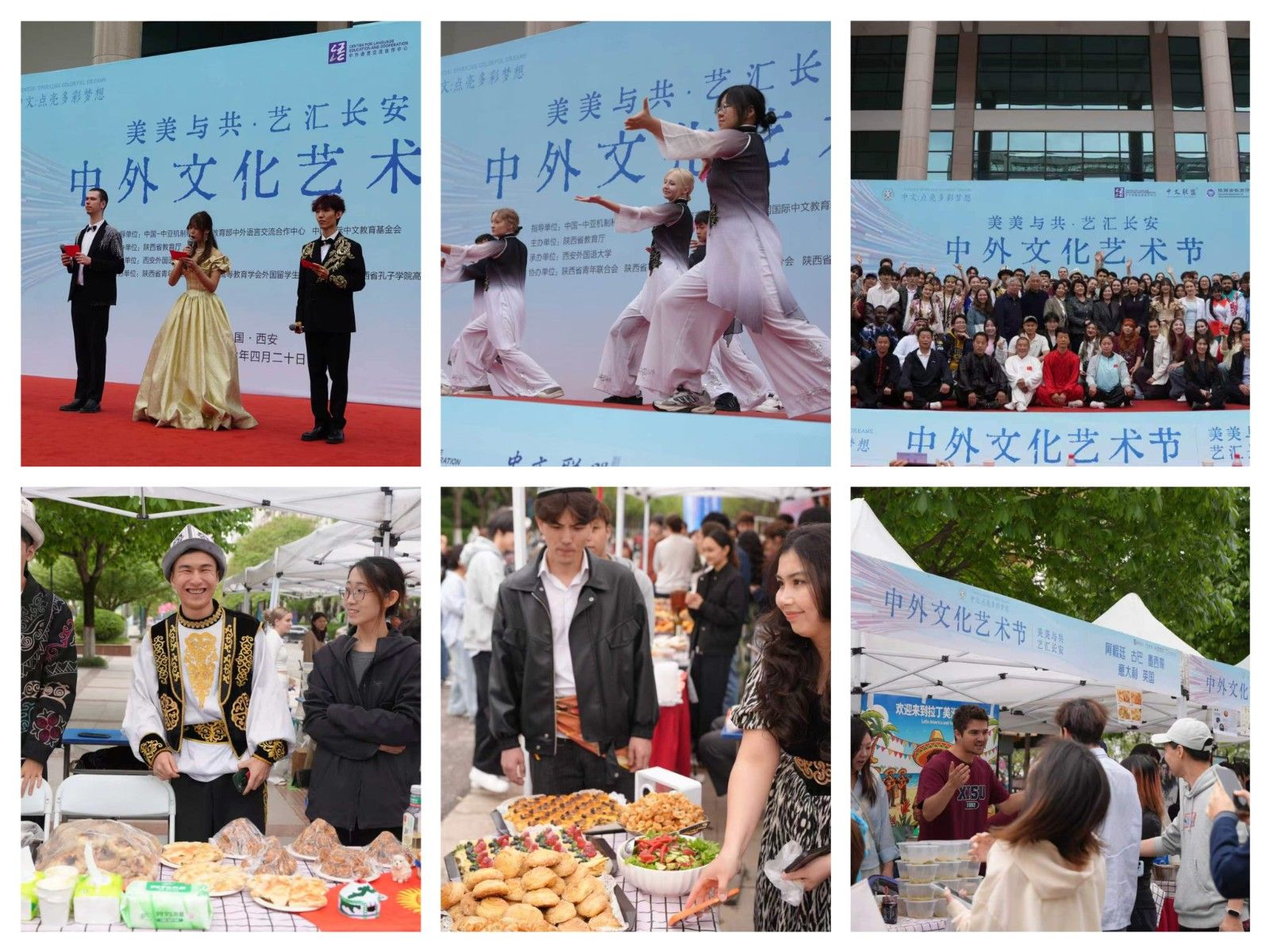 中午,“美美与共,艺汇长安”中外文化艺术节暨国际美食节盛大举行。文化艺术节上演15个特色节目,来自15个国家的60余名国际学生精心准备了12个舞蹈、歌曲类节目。青年学子用灵动的舞姿与动听的歌声展现各自国家的文化风情,表达对中文及中华文化的热爱。活动还融入了浓郁的中华传统文化元素:白鹿原影视城带来气势磅礴的华阴老腔与热闹喜庆的舞狮表演,陕西红拳文化研究会呈现刚劲有力的红拳,刘彬老师带来变幻莫测的变脸表演。同期举行的国际美食节人气高涨,来自31个国家的150名国际学生带来本国特色美食,让嘉宾在品味美食中感受多元饮食文化,于味蕾间加深对文明的理解,真正实现以食为媒、以味传情。
