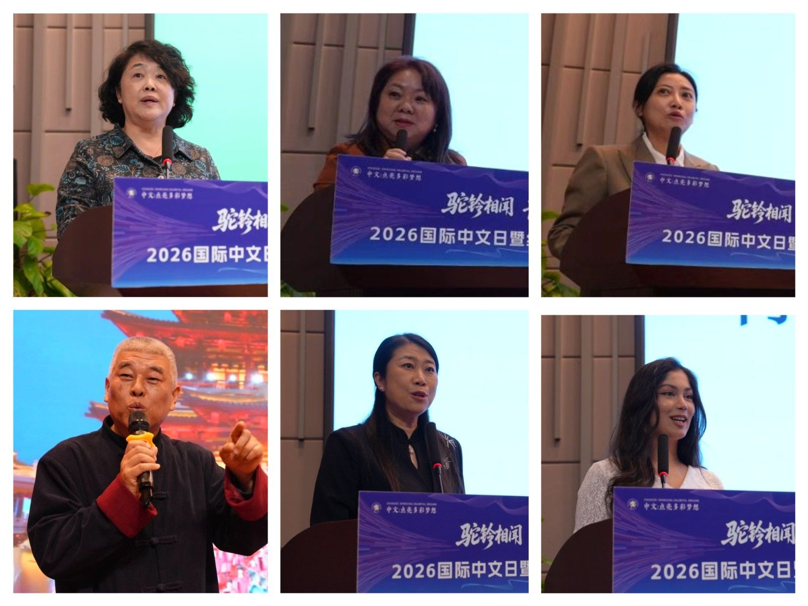 上午的主旨发言环节,北京语言大学姜丽萍教授、中亚陕西商会会长吉延伟、中国传媒大学教授乐琦、西安外国语大学非遗校外指导老师及资深非遗工作者王智、天津外国语大学副教授朱京津、我校塔吉克斯坦留学生米娜,分别以《从西安出发:中文,联通世界的桥梁——在地文化与国际中文教育的双向赋能》《长安西去三千里:我的中亚故事与你们的“骞人”时代——写给青年一代的文明请柬》《共生与跃迁:国际中文日品牌“五力”协同进化的动力机制与全球传播范式重构》《文明互鉴,民心相通——非遗在丝路文明交流互鉴与人类命运共同体建设中的时代价值》《传统文化在国际中文教学中的传播路径研究——以故宫文化为例》《我的中国故事,我的中国梦》为题,作了精彩发言。
