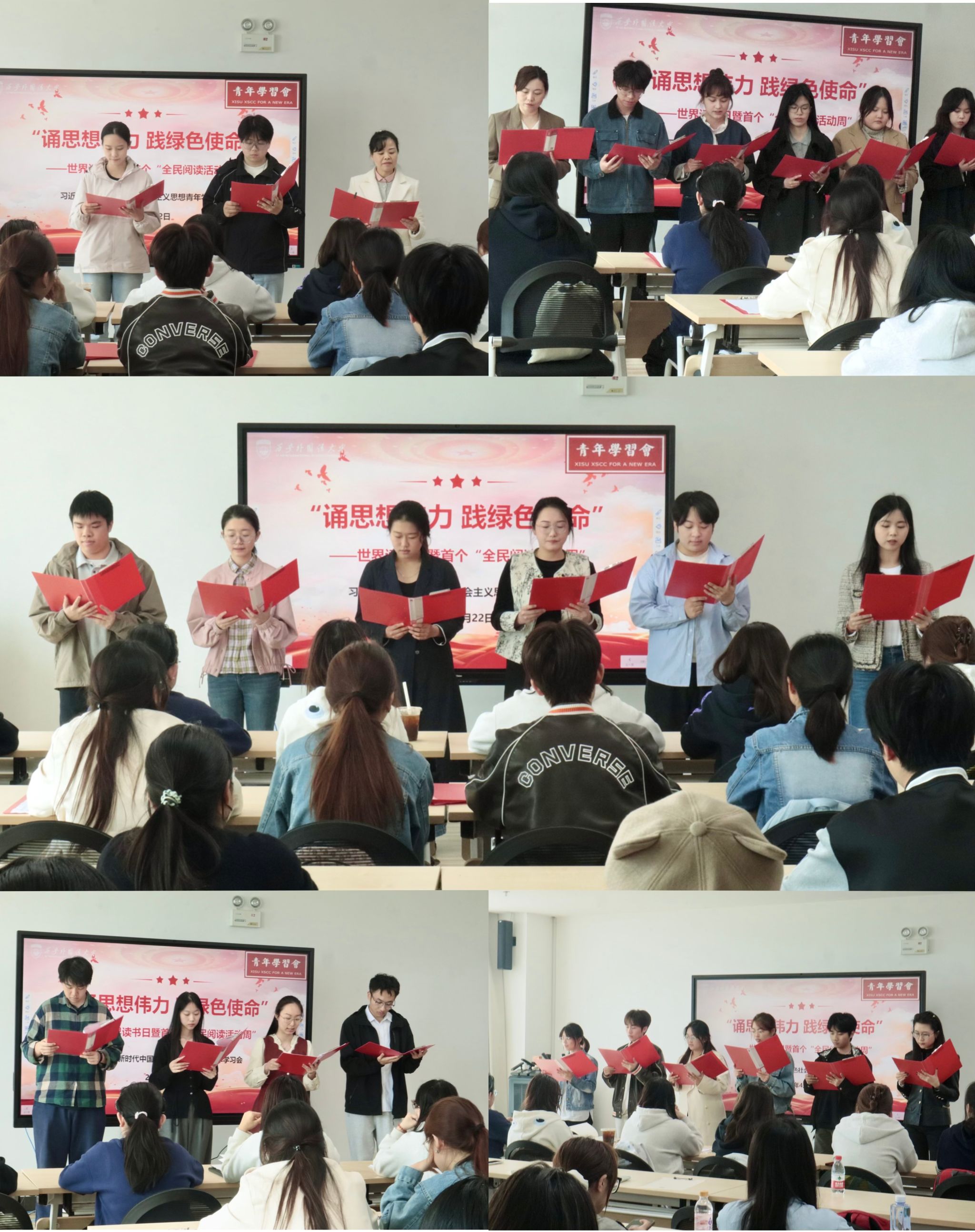 此次活动紧扣第31个世界读书日与全民阅读活动周主题,深度呼应“书香中国・语通世界”全国多语种朗读活动倡议,把理论学习、榜样分享与青年实践有机融合,既是书香校园建设的生动载体,也是立德树人的鲜活课堂。引导广大师生把读书所得、学习所悟转化为低碳生活、守护生态的实际行动,进一步厚植读书风尚与绿色理念,为建设书香校园、美丽中国注入青春动能。