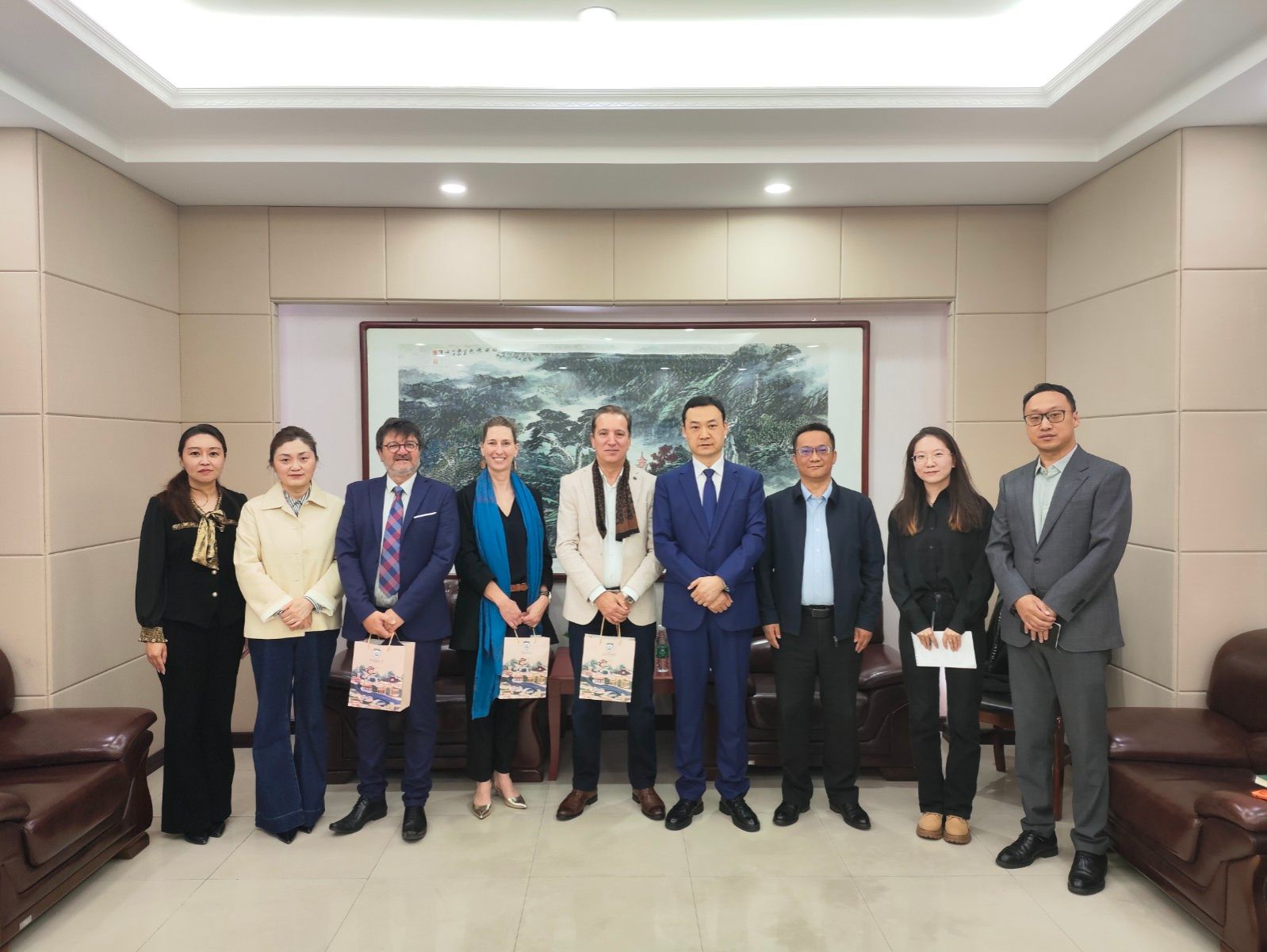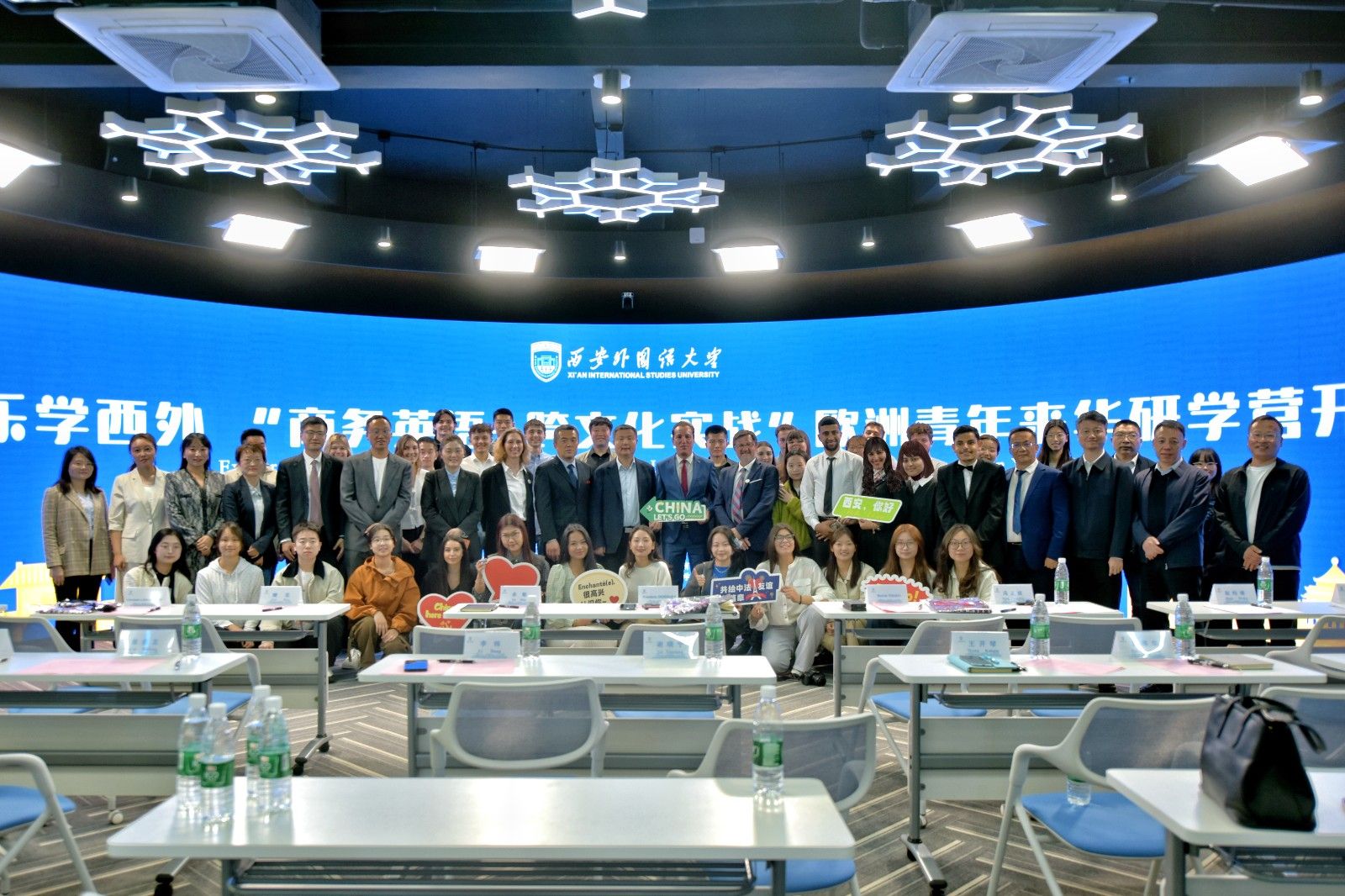 4月23日,知行中国・乐学西外“商务英语+跨文化实战”欧洲青年来华研学营(第二期)开营仪式在我校长安校区全景创新教学空间实验室举行。开营仪式前,校长吴耀武在校务楼分别会见了法国艾克洛尔管理学院副校长弗雷德里克·多斯凯和突尼斯VAGATOP旅游学院校长贝希尔·尤斯菲一行以及山西省运城市芮城县县委书记余敏一行,就深化人才培养合作、拓展研学资源、推动国际文化交流与校地协同等事宜进行交流并达成重要共识。