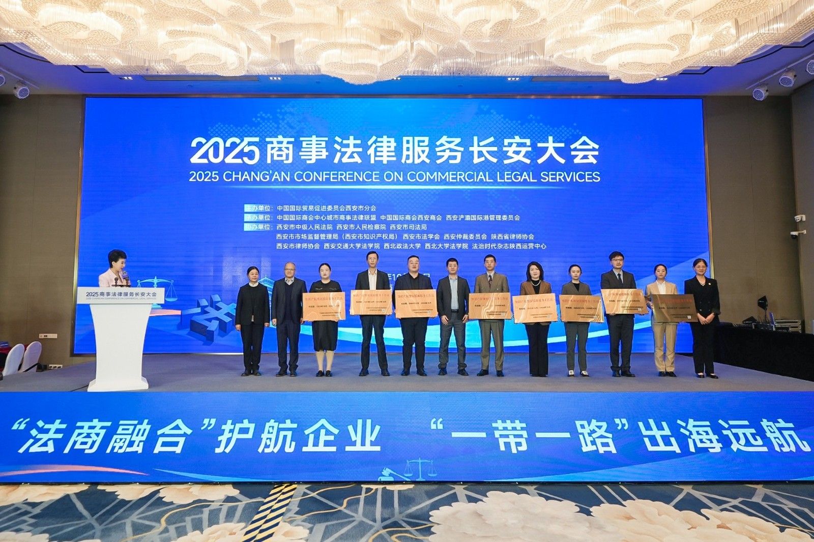 10月30日上午,“2025商事法律服务长安大会”在西安成功召开。本次大会由中国国际贸易促进会西安市分会主办,主题为“争议解决机制的多元化与合作发展——赋能‘一带一路’国际商事法律服务示范区(中央法务区)高质量建设”。会上,中国国际商会调解中心、中国海事仲裁委员会西南分会等机构代表发表专题演讲,中国科学院大学知识产权学院专家就知识产权与国家创新治理现代化的前沿成果进行了分享。
