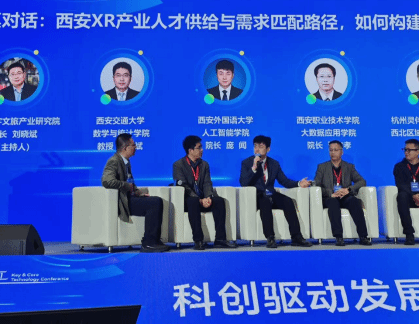 在圆桌讨论环节,庞闻院长围绕“XR产业人才供给与需求匹配路径”议题,结合我校人工智能与旅游学科交叉特色,发表专题讲话。他指出,当前XR产业面临高端复合型人才短缺的挑战,需通过“学科融合、校企共育”打破传统培养边界。庞闻院长强调:“西安外国语大学正积极探索‘语言+技术+行业’的跨学科培养模式,依托旅游学院与人工智能学院的协同优势,推动XR技术在文旅场景中的创新应用,为数字文旅、国际传播等领域培养具备技术能力与全球视野的复合型人才。”