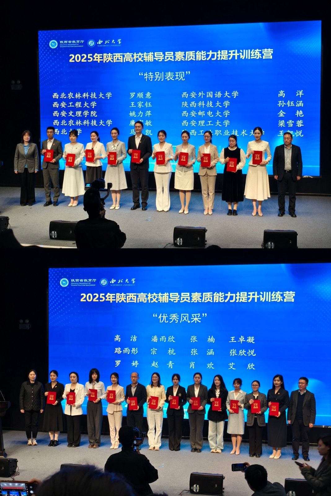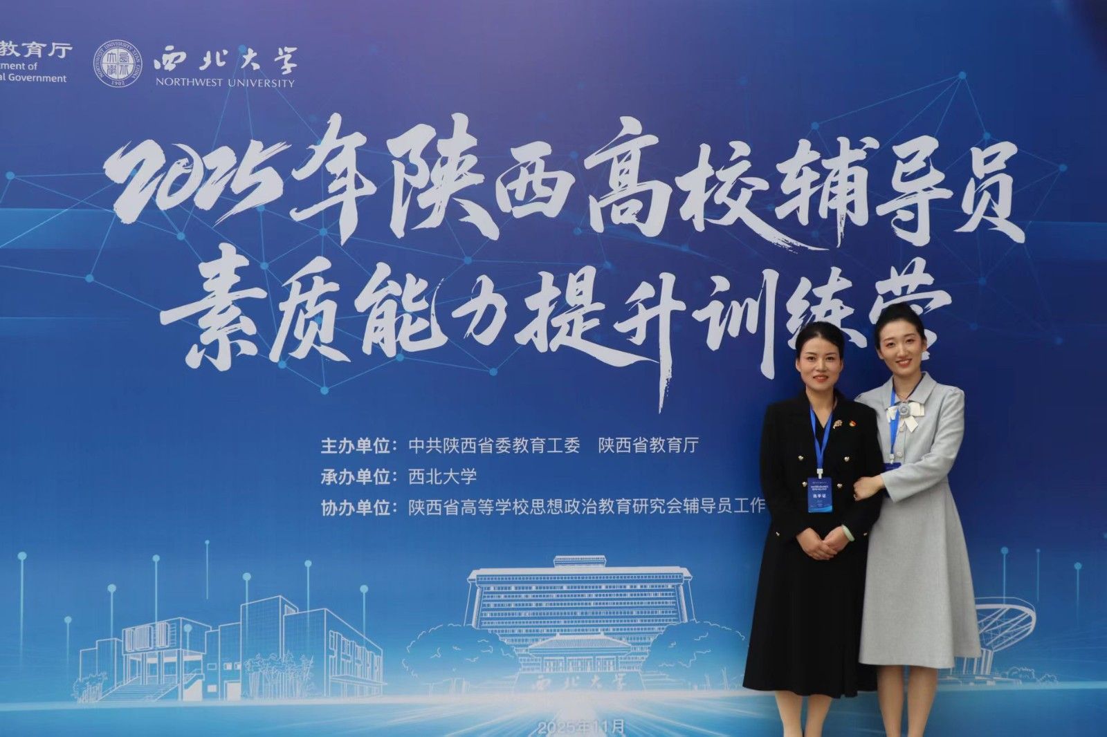 11月5日-7日,2025年陕西高校辅导员素质能力提升训练营在西北大学长安校区举行。我校英文学院辅导员高洋获“特别表现”奖,亚非学院辅导员高洁获“优秀风采”奖。