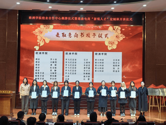 遨森电商定制班是欧洲学院校企合作中心成立以来的首个人才定制班,是学院深化产教融合、精准对接跨境电商产业需求的重要里程碑,也是语言类专业与行业头部企业携手赋能的创新实践,更是校企双方共育复合型人才、实现共赢发展的生动写照。今后,学院将依托此类定制班,建成“双导师、双场景、双考核”的共育机制,培养企业认可的“即插即用”型人才。