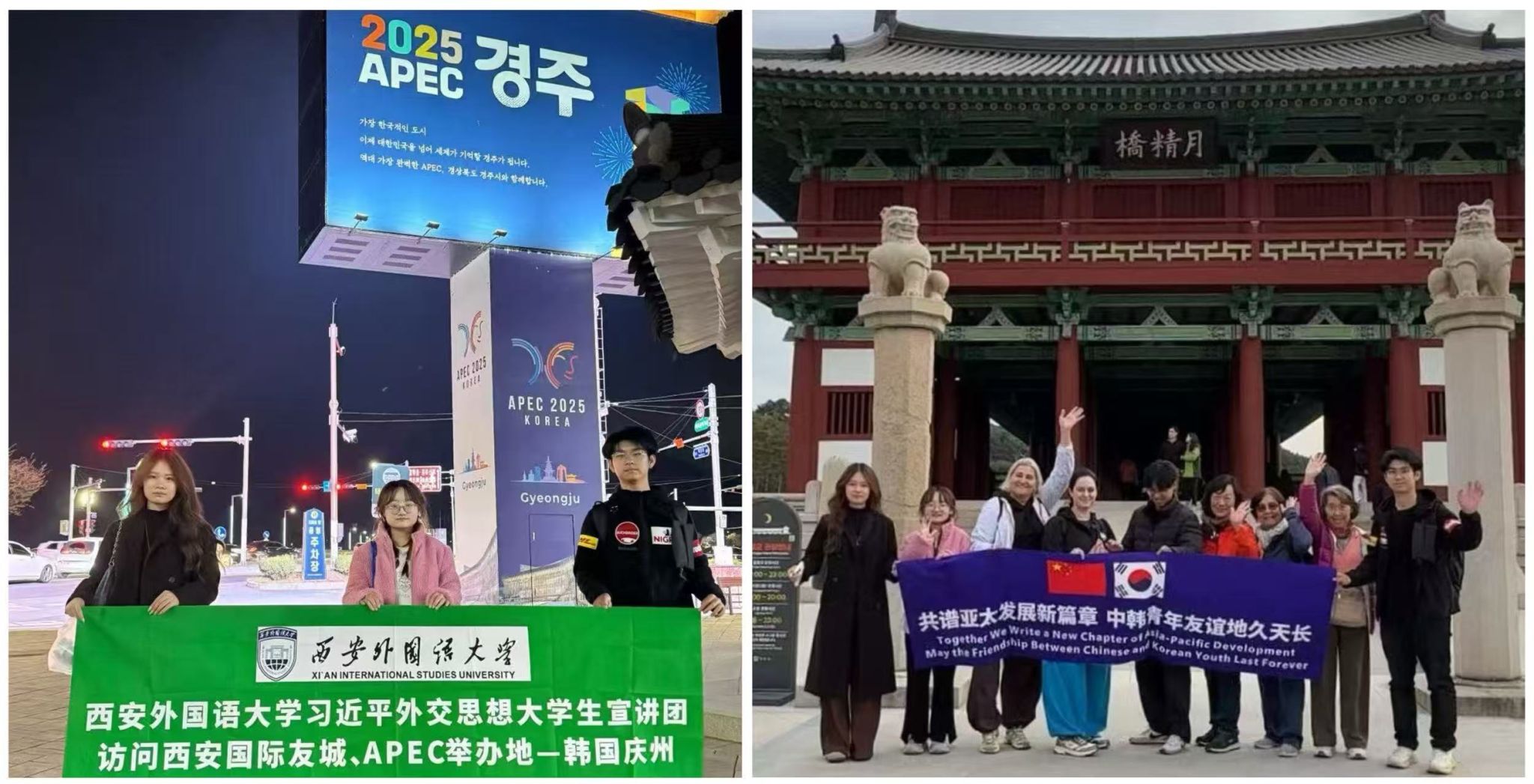 为深化亚太区域合作、培育具备全球治理能力的青年人才,值此陕西省与韩国世宗市结好十周年暨APEC会议在友城庆州闭幕之际,我校“全球治理与国际组织人才培养基地”选派国际关系学院李佳怡、李思瑶、伊诚昊3名学子,组建陕西青年代表团于11月9日至14日成功赴韩执行首批友好城市青年交流项目。此次访问是我校将全球治理人才培养实践课堂延伸至国际舞台的战略举措。