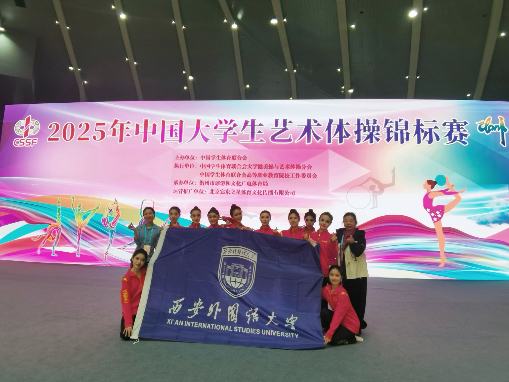 2025年11月15日至20日,在2025年中国大学生艺术体操锦标赛上,西安外国语大学艺术体操代表队凭借出色表现,在43所参赛高校中脱颖而出,以团体总分第五名的优异成绩实现突破,跻身全国高校第一梯队。