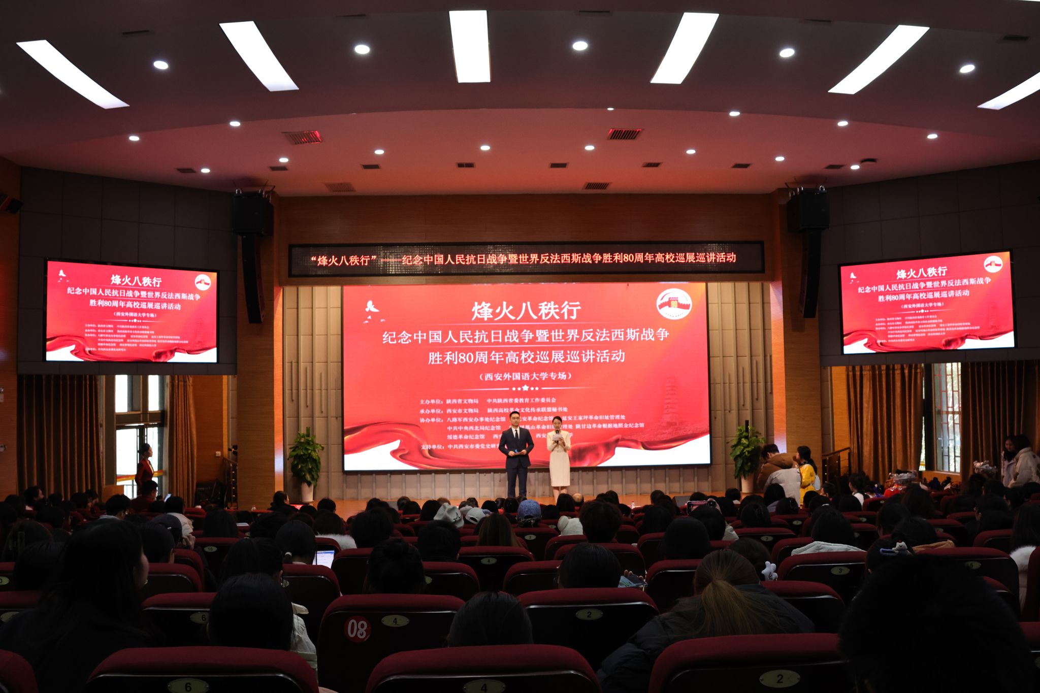 11月26日下午,“烽火八秩行”——纪念抗日战争暨世界反法西斯战争胜利80周年高校巡展巡讲活动在我校举行。校党委副书记王强,职能部门、学院负责人代表以及近300名师生参加此次活动。
