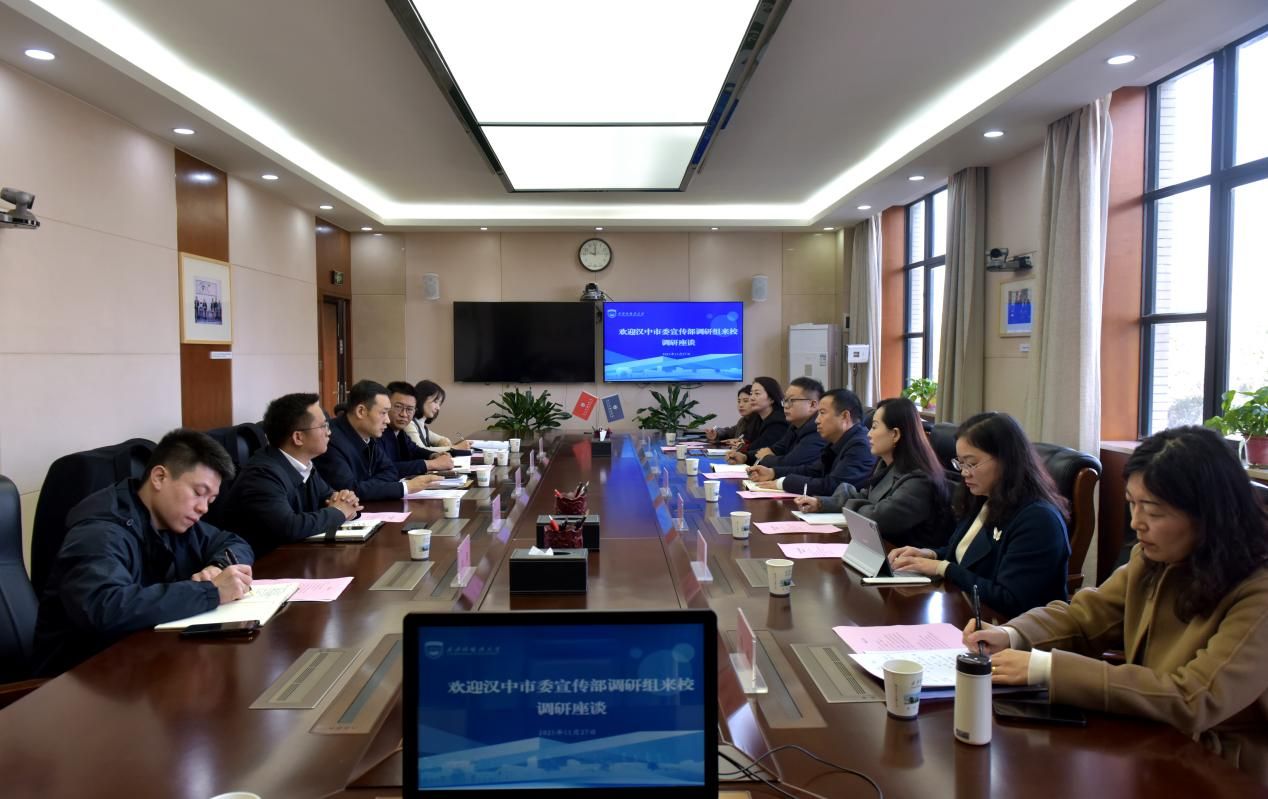 11月27日上午,汉中市委宣传部副部长李超率汉中市融媒体中心、陕西理工大学相关负责人来校调研,围绕国际传播能力建设与校地合作开展深入座谈。校长吴耀武及党委宣传部、英文学院有关负责人参会。
