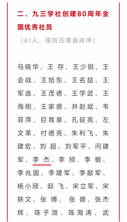 近日,九三学社中央表彰了全国优秀省级组织、全国优秀基层组织、全国优秀社员和全国优秀社务工作者。我校九三学社直属小组组长、艺术学院院长李杰教授荣获“九三学社创建80周年全国优秀社员”。
