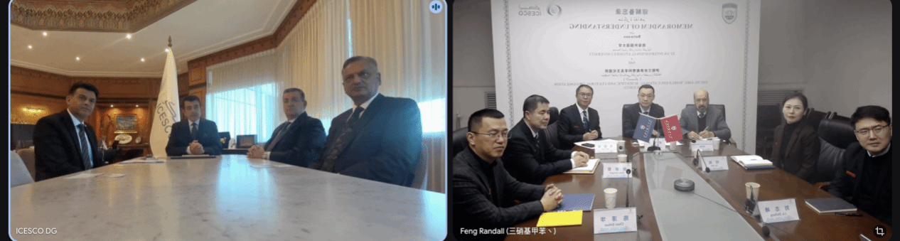 2025年11月27日,西安外国语大学与伊斯兰世界教育科学及文化组织(ICESCO)以线上线下相结合的方式,成功举行谅解备忘录签署仪式。伊斯兰世界教育科学文化组织总干事萨利姆·本·穆罕默德·马利克博士及该组织相关负责人,西安外国语大学校长吴耀武、国际合作与交流处负责人及亚非学院领导班子成员共同出席仪式。