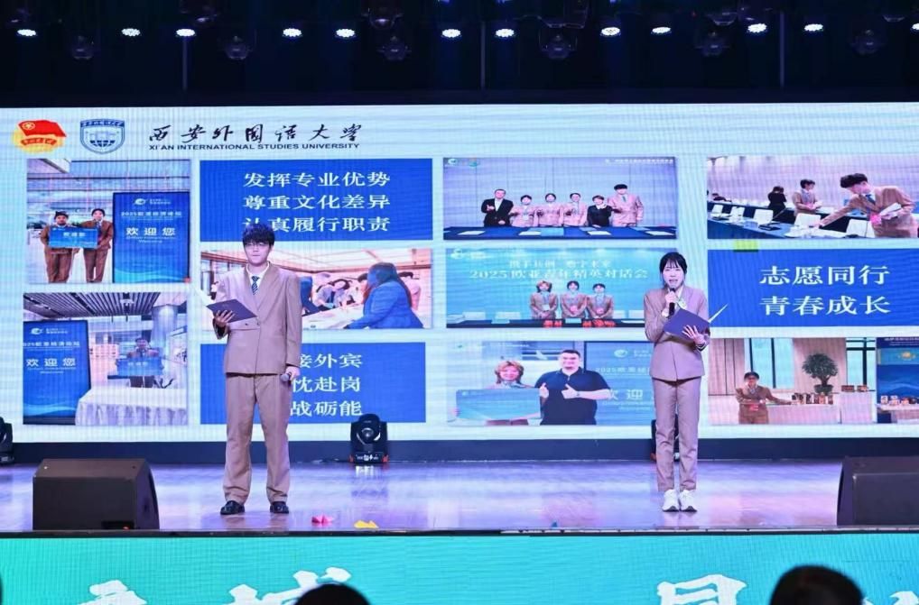 12月5日,由中共西安市委社会工作部、共青团西安市委联合主办的“志愿之城 同心西安——2025年西安市国际志愿者日主题活动”在西安举行,450余名各界代表参加活动。我校“小西树”志愿服务团队师生代表受邀参会,英文学院颜暄玘、高级翻译学院田安家乐两位同学作为2025年欧亚经济论坛志愿者代表发言。