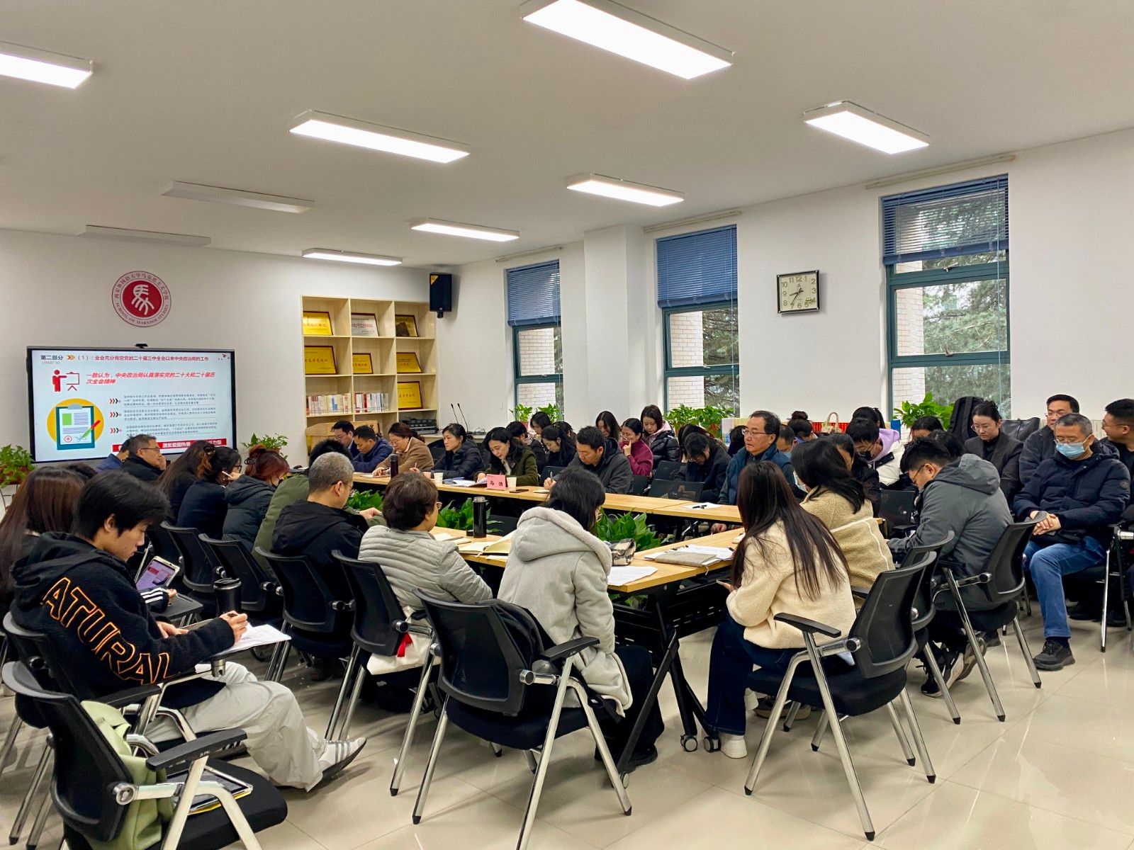 马洁强调,学习贯彻党的二十届四中全会精神是当前和今后一个时期全校的重大政治任务,要突出问题导向,结合工作实际,将全会精神转化为推动学校高质量发展的强大动力。一是要系统贯通学,把全会精神与全国两会、全国教育大会、习近平总书记来陕考察重要讲话精神结合起来,系统把握、融会贯通学习。二是要自觉主动学,马克思主义学院要增强政治意识,走在党的创新理论学习和宣讲前列,加强理论研究阐释,将全会精神融入思政课,更好落实立德树人根本任务。三是要联系实际学,把全会精神全面、系统、深入地融入到学院“十五五”事业发展规划编制中,坚持胸怀“国之大者”,勇于开拓创新,不断深化综合改革,以高质量党建引领学院高质量发展。