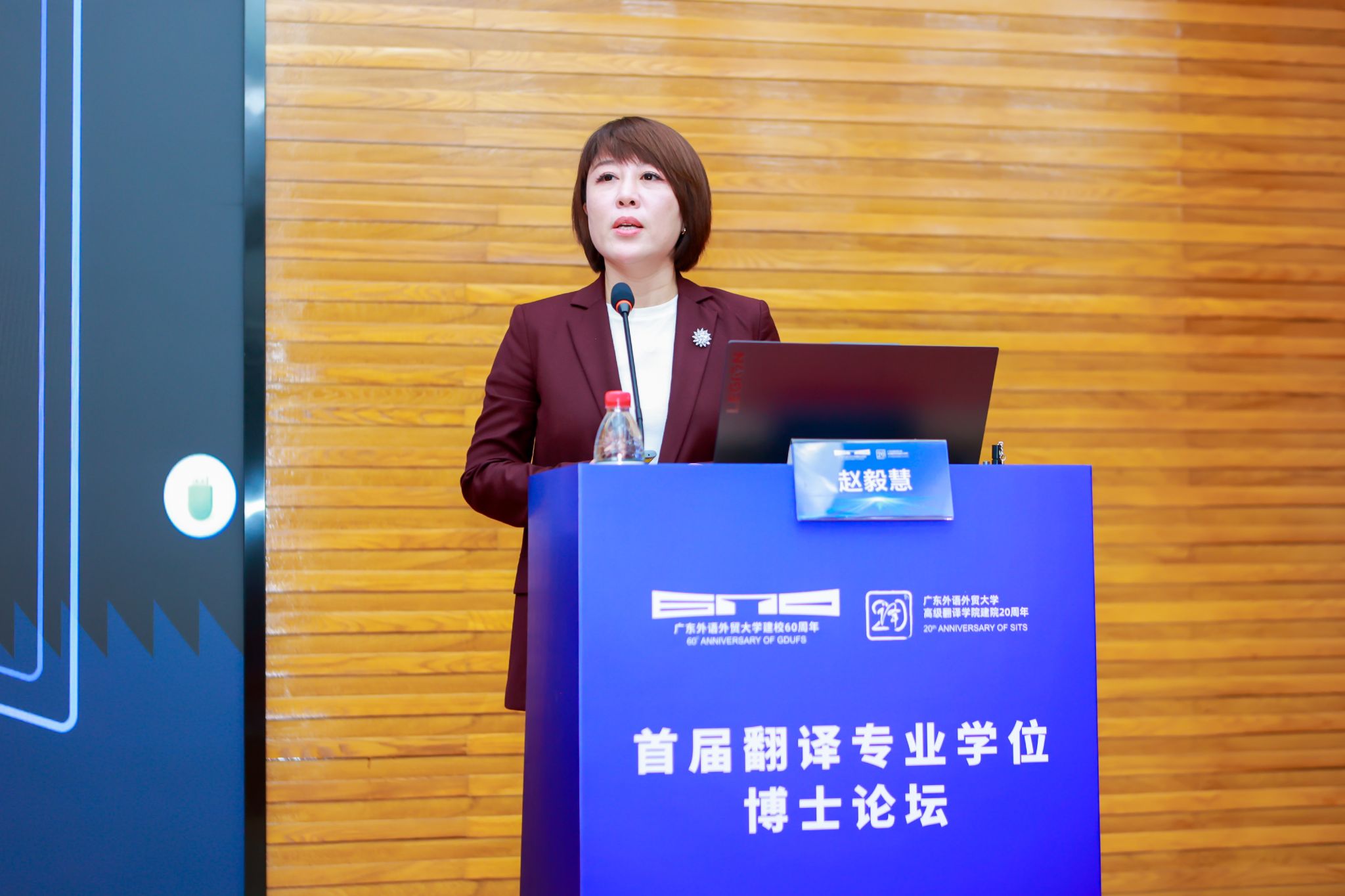 党争胜做了题为“翻译专业博士的他教与自培”的主旨报告,以深厚的学养和清晰的逻辑深入阐述了DTI培养的外在引导与自主发展间的辩证关系,为创新DTI育人模式提供了兼具理论高度与实践导向的思考路径。赵毅慧做了题为“新时代高层次翻译人才培养的产学研生态构建:创新与协同”的专题报告,系统介绍了我校在DTI翻译专业博士的培养定位、教学理念和产学研融合方面的创新举措与实践成果,受到与会代表的高度关注与积极评价。