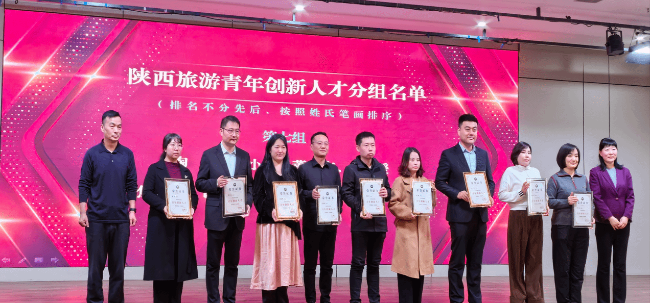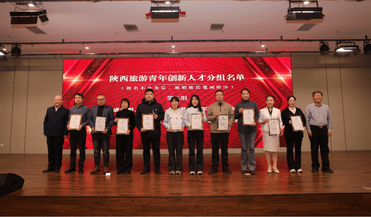 在随后举行的表彰环节中,李东教授与学院硕士研究生强晓娜凭借其在旅游创新研究与实践中的优异成绩,荣获“陕西旅游青年创新人才”称号。这一荣誉不仅是对两位师生个人能力的认可,也体现了旅游学院在创新型旅游人才培养方面的显著成效。