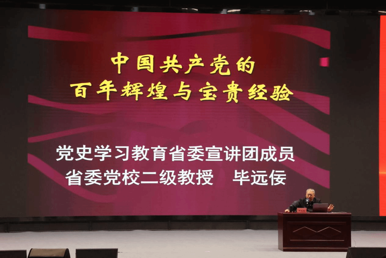 毕远佞教授基于深厚的党史研究功底、丰富的教学经验及红色实践经历,以党的百年奋斗为主线,系统梳理了革命、建设、改革各个时期的成就与变革,结合典型案例剖析了宝贵经验。毕教授的讲座兼具理论深度与实践温度,用通俗的语言解读历史逻辑,引导青年学子感悟真理、筑牢信仰;他寄语新时代青年以党史学习为契机,提升党性与学术素养,增强历史自觉与历史主动,将个人理想融入国家发展,为民族复兴贡献力量。