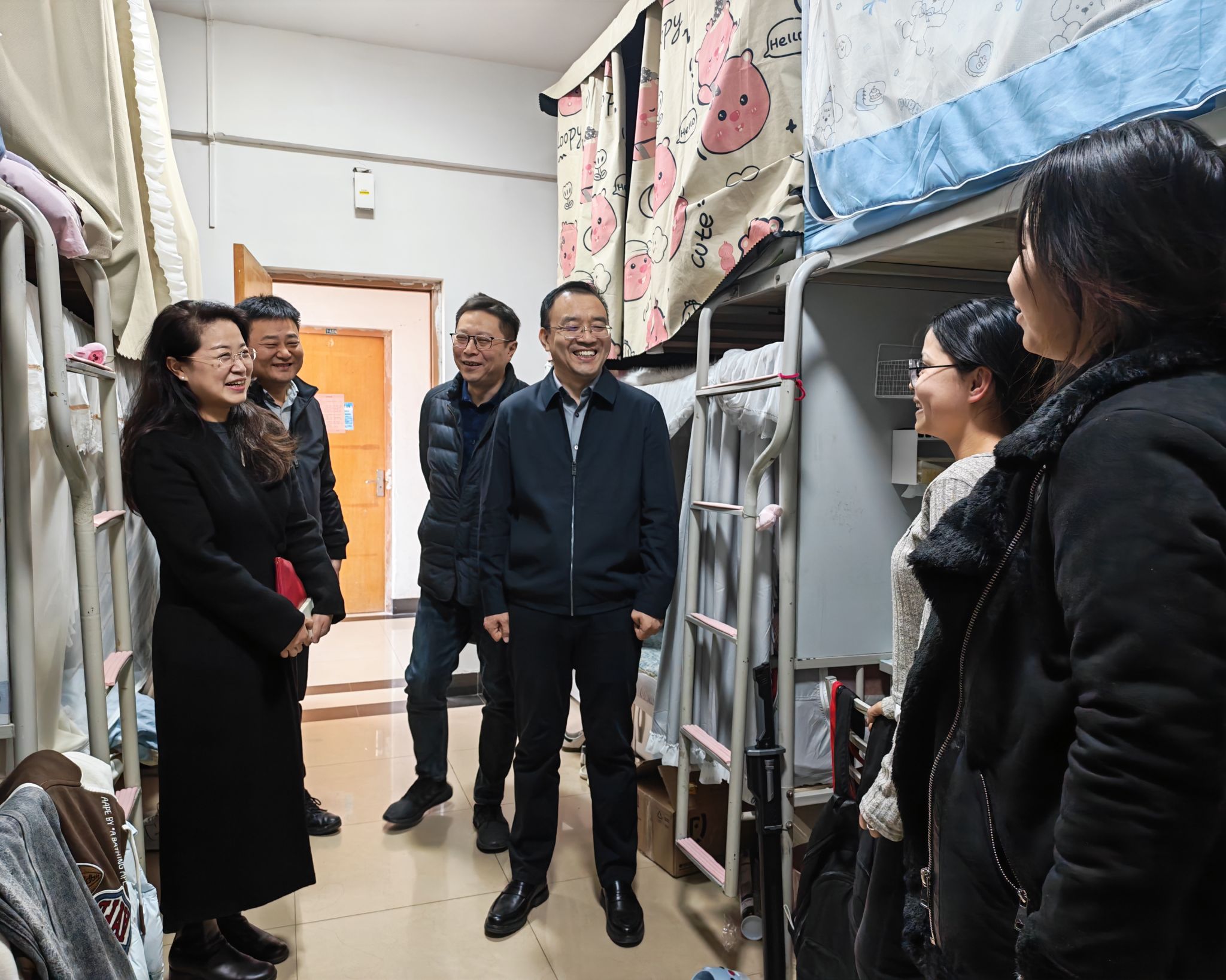 座谈会结束后,黄建友副校长一行前往学生社区及新生宿舍进行走访。走访中,黄建友副校长与学生亲切交谈,详细了解学生的住宿环境、生活状况和实际需求,叮嘱学生注意冬季保暖和宿舍安全,鼓励学生互帮互助、共同进步,让学生深切感受到学校的关怀与温暖。