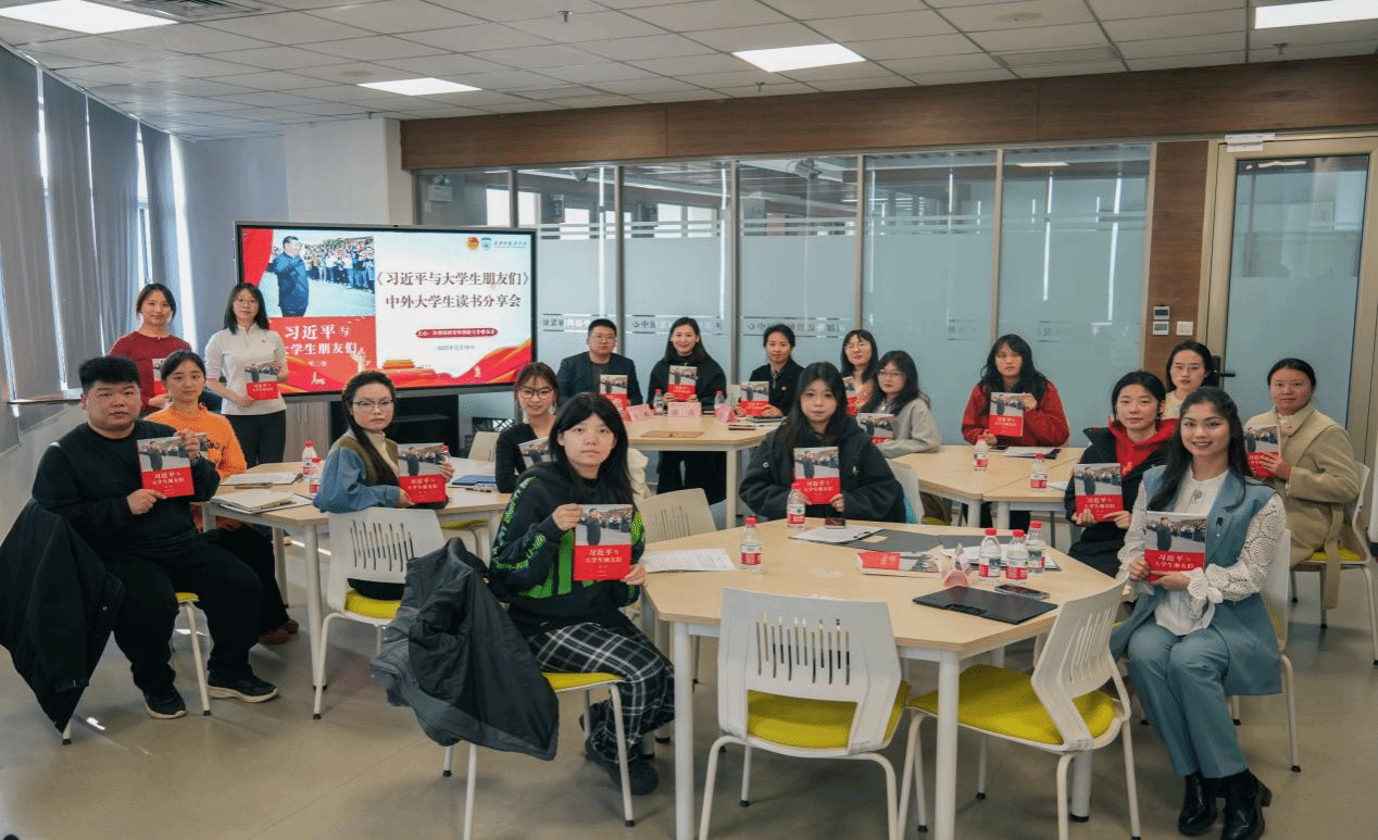 为深入学习贯彻习近平总书记关于青年工作的重要思想,搭建中外大学生思想交流与文化互鉴的平台,12月18日,我校在图书馆研讨室组织开展《习近平与大学生朋友们》中外大学生读书分享会。校团委副书记(主持工作)张晶、副书记梁鹿儿,马克思主义学院教师任鹏,以及各学院师生代表20余人参加活动。会议由梁鹿儿主持。
