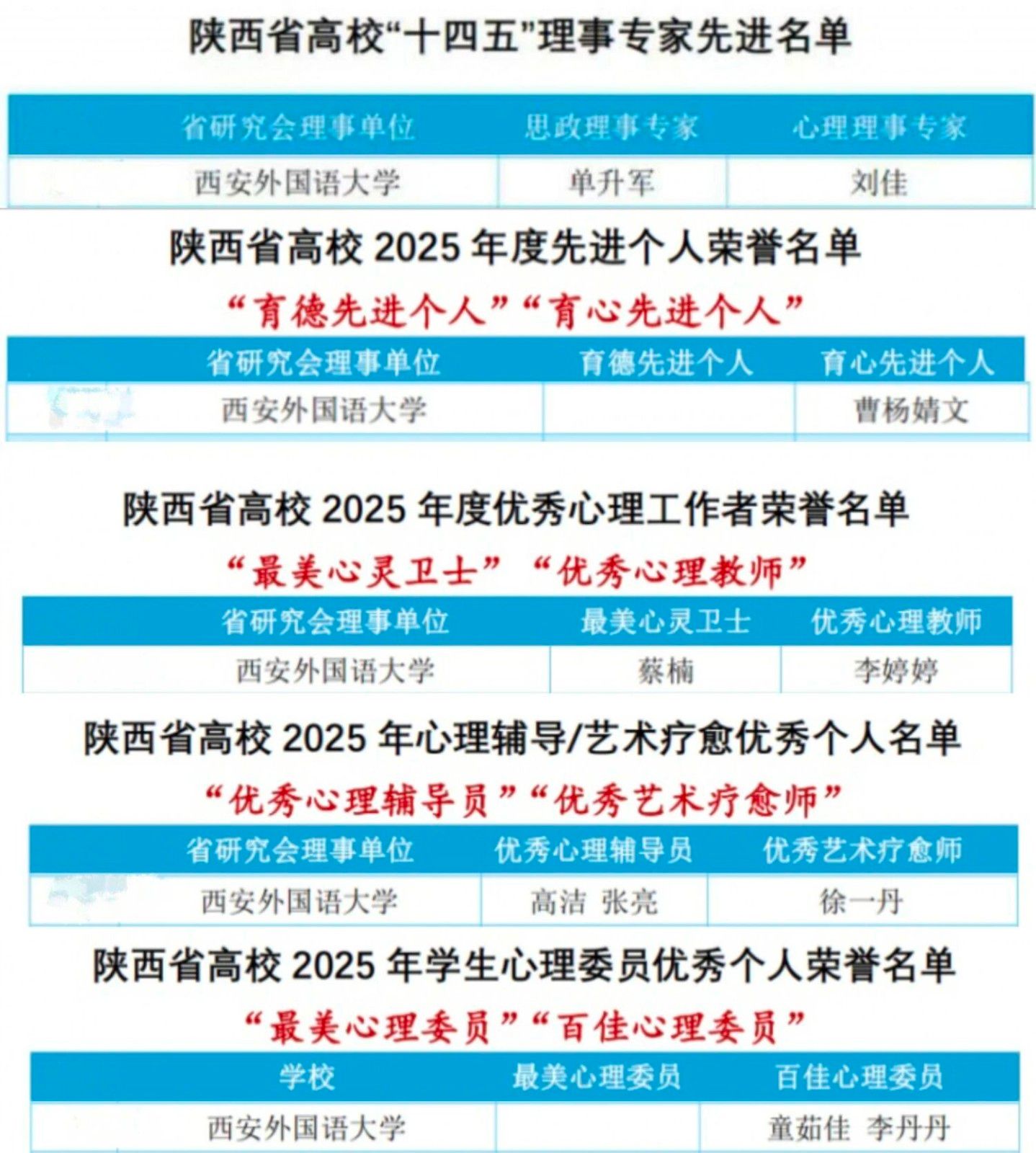 省研究会对陕西省高校“十四五”心理育人先进个人予以表彰。我校学工部部长单升军被评为陕西省高校“十四五”思政理事专家,心理健康中心主任刘佳获评心理理事专家。