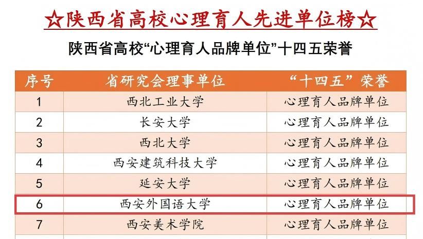 近日,陕西省高校心理素质教育研究会印发《关于公布“十四五”期间和2025年度心理健康教育工作先进单位和个人荣誉名单的通报》,我校心理育人工作成果突出,荣获陕西省高校“十四五”心理育人品牌单位。