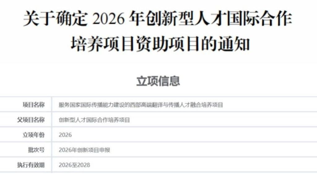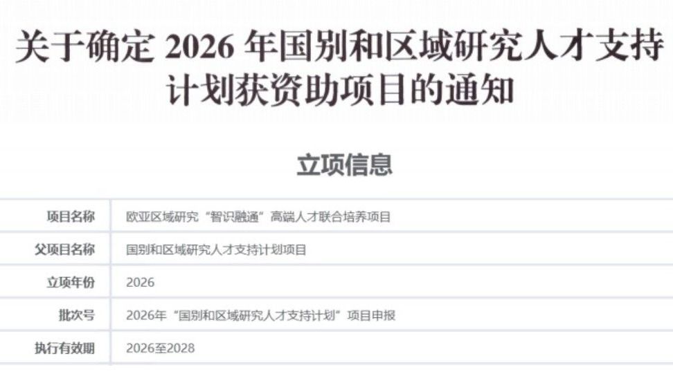截至目前,我校已累计获批国家留学基金委相关高层次人才培养项目6项。此次两个项目成功立项,体现了国家留学基金委对我校学科建设、人才培养与国际合作成效的充分肯定。项目覆盖欧亚、欧美优质教育资源,紧扣国家战略关切领域,有助于我校构建多层次国际化人才培养体系,在国际传播与区域国别研究领域形成系统性培养机制与科研团队优势,为学校人才培养与学科发展提供持续支撑。