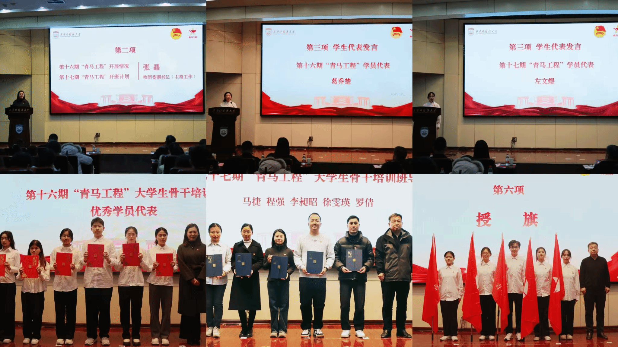 仪式上,校团委副书记(主持工作)张晶回顾第十六期培训成果、实践活动及学员成长,解读第十七期开班计划,涵盖培训目标、课程设置等核心内容。第十六期学员代表葛乔楚分享培训收获与责任担当,第十七期学员代表左文煜表态将勤学实践、勇担使命。