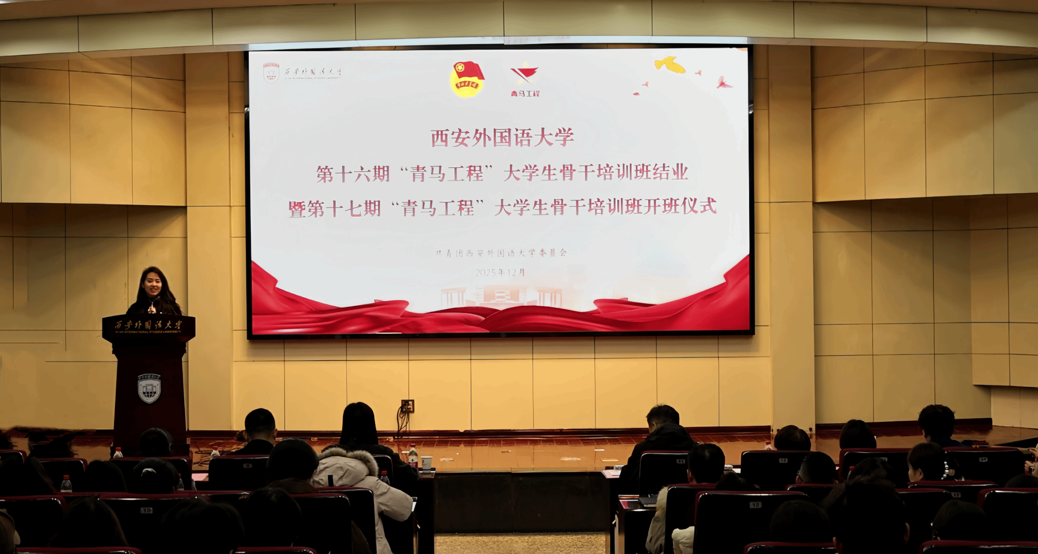 12月24日,我校第十六期“青马工程”大学生骨干培训班结业暨第十七期“青马工程”大学生骨干培训班开班仪式在长安校区校务楼报告厅举行。副校长李京昊出席仪式、校团委负责人、各学院党委副书记、分团委书记、第十六期“青马工程”优秀学员代表、第十七期“青马工程”导师及全体学员参加。仪式由校团委副书记梁鹿儿主持。