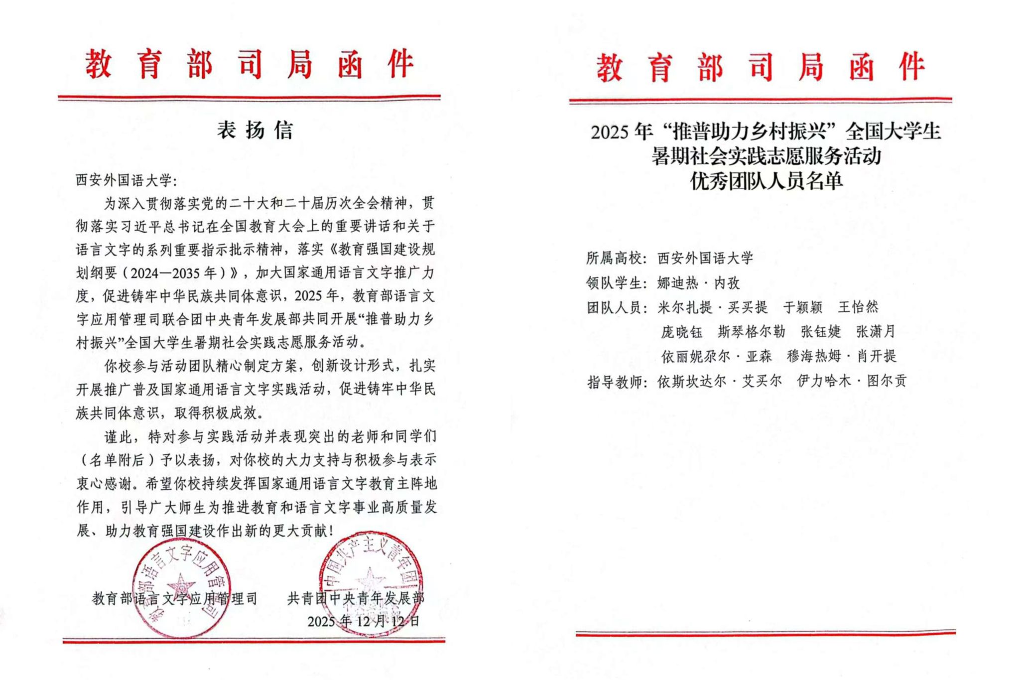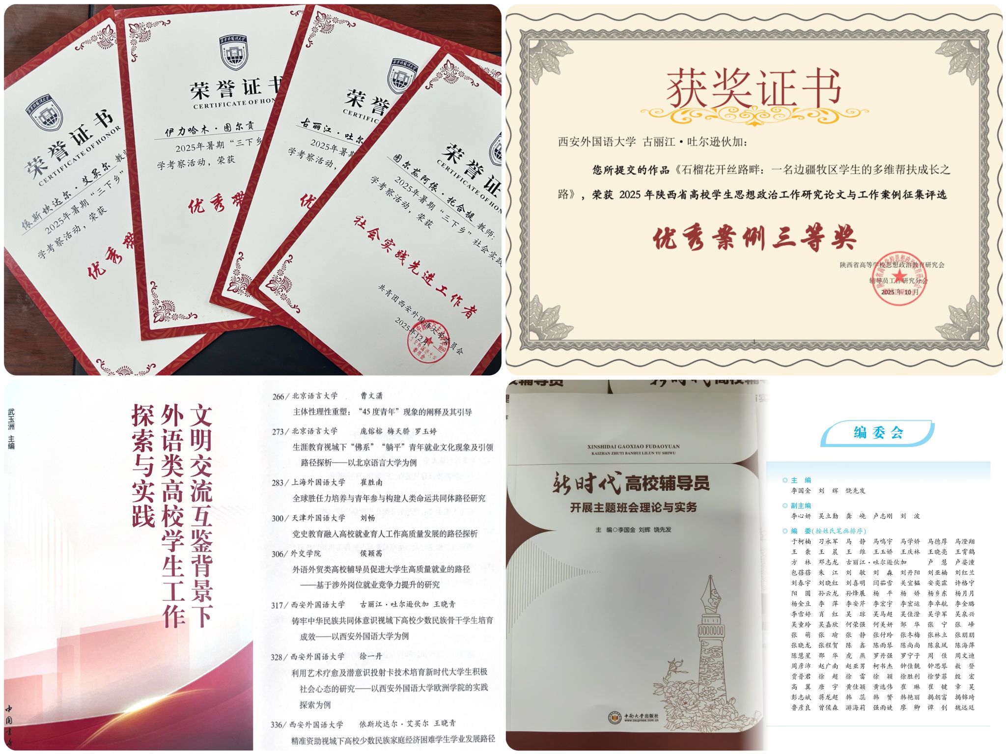 实践升华,检验知行合一的育人实效。学校坚持以实践育人,鼓励少数民族学生在各类实践活动中经风雨、长才干。2025年度少数民族学生荣获校级及以上奖项共有90项。实践层面,“星火石榴籽”实践团深入边疆开展“推普助力乡村振兴行动”,获评全国优秀团队,用实际行动服务国家战略;理论层面,《培根育魂石榴花开》主题班会案例被收录于高校辅导员专著,“一名边疆牧区学生的多维帮扶成长之路”案例荣获陕西省优秀案例评选三等奖,2篇相关研究论文入选外语外贸类高校年会优秀论文集,实现了实践探索与理论研究的良性互动,充分彰显了我校少数民族学生工作的扎实成效。