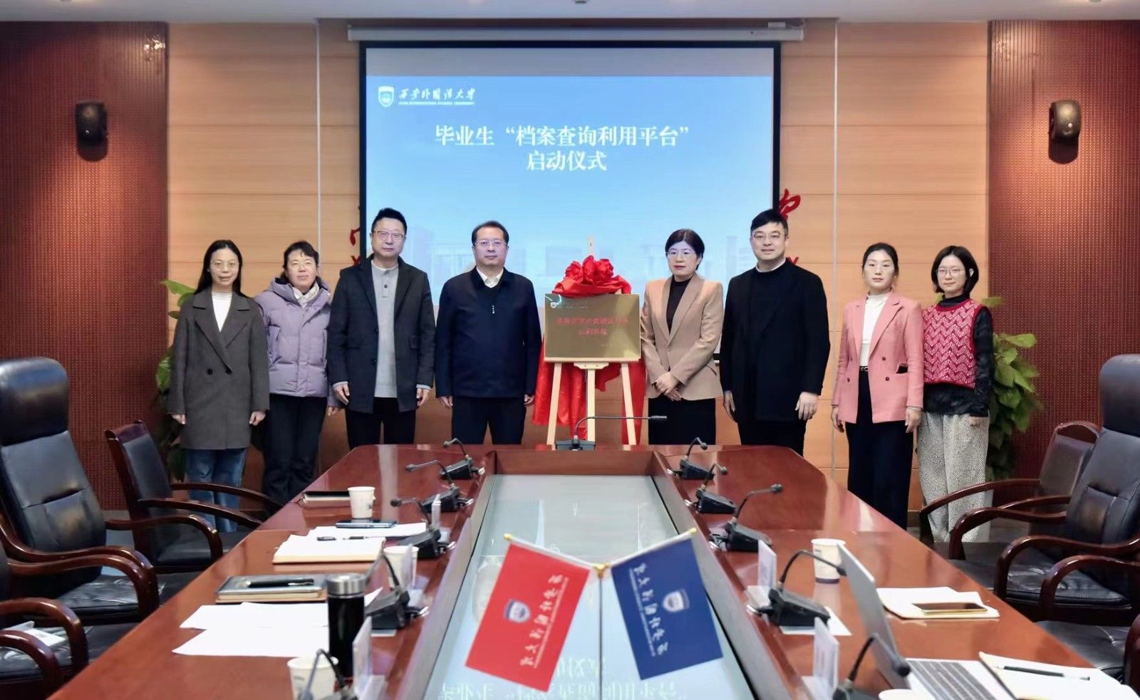 会议最后,双方共同为毕业生档案查询利用平台揭牌。