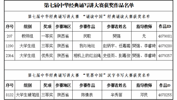 近日,由教育部、国家语委主办的第七届中华经典诵写讲大赛全国总决赛结果揭晓。我校师生凭借扎实的语言功底、精湛的艺术表现力和对中华优秀传统文化的深刻理解,在比赛中脱颖而出,在“诵读中国”经典诵读大赛中新闻与传播学院樊强老师以全国第一名成绩获教师组一等奖,赵炳宇、任嘉璐同学获大学生组三等奖,史佳雨、彭嘉俊同学获优秀奖;在“笔墨中国”汉字书写大赛中牟秀丽同学获大学生硬笔组三等奖,展现了学校在语言文化教育与中华优秀传统文化传承方面的丰硕成果。