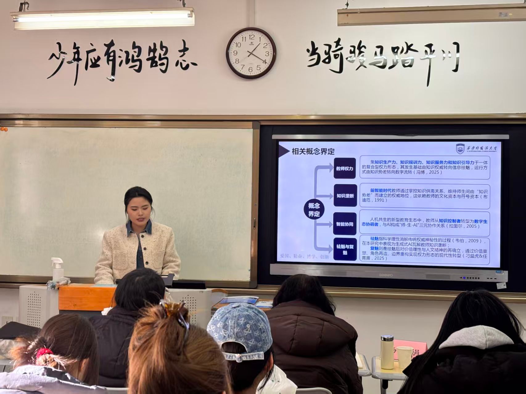 1月9日,西安外国语大学第十三届教育学类研究生学术年会“算法与心灵:AI时代教育学的困守与突围”在长安校区顺利举办。西安外国语大学副校长桑元峰、研究生院院长潘秋玲、陕西师范大学陈晓端教授、西安外国语大学孙华教授应邀出席会议,会议由教育学院副院长(主持行政工作)高岩主持。