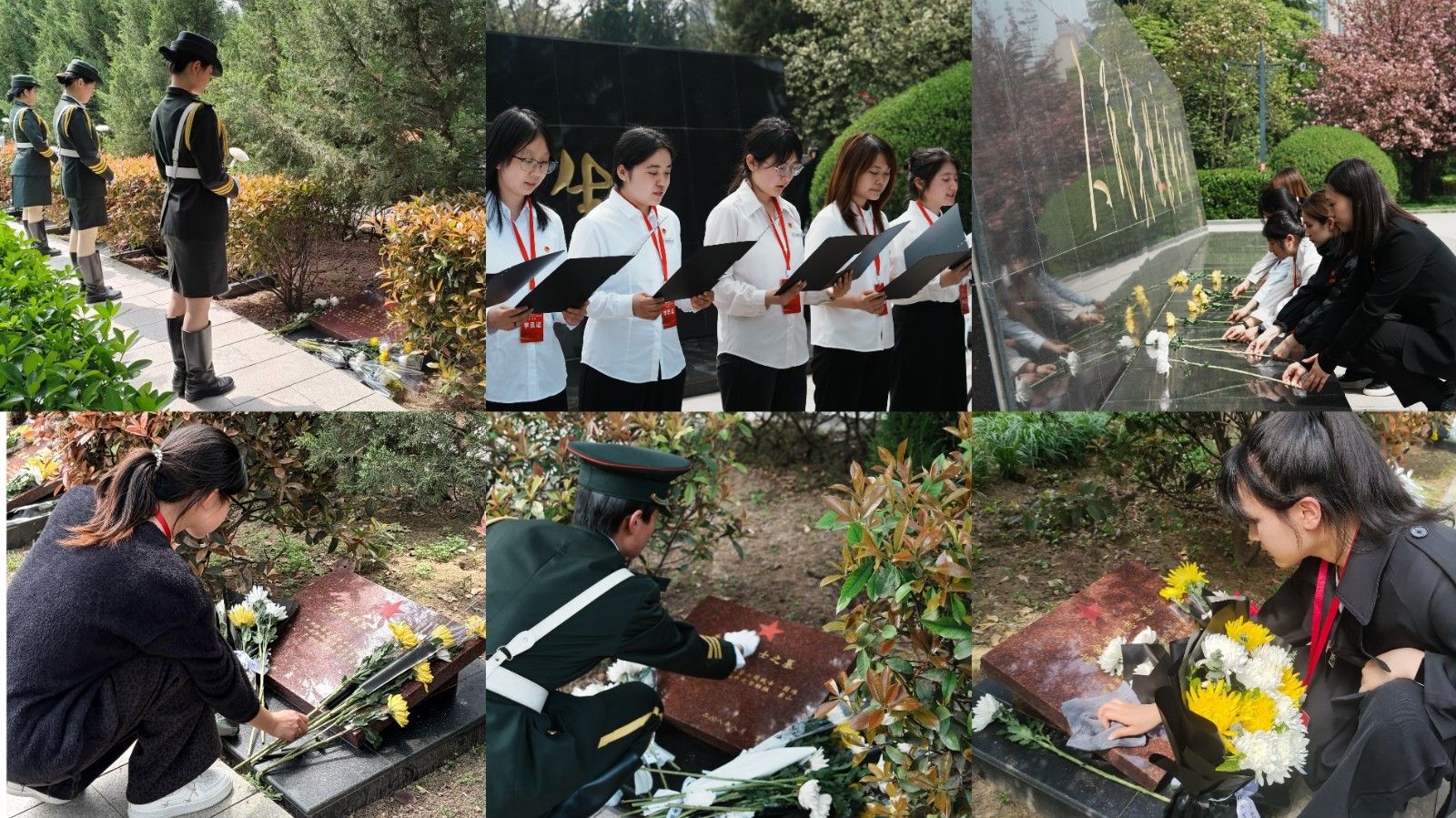 仪式结束后,全体学员进入自由参观环节,各小组分别开展擦拭墓碑、集体朗诵、合唱等活动,以实际行动表达对先烈的追思与敬意。