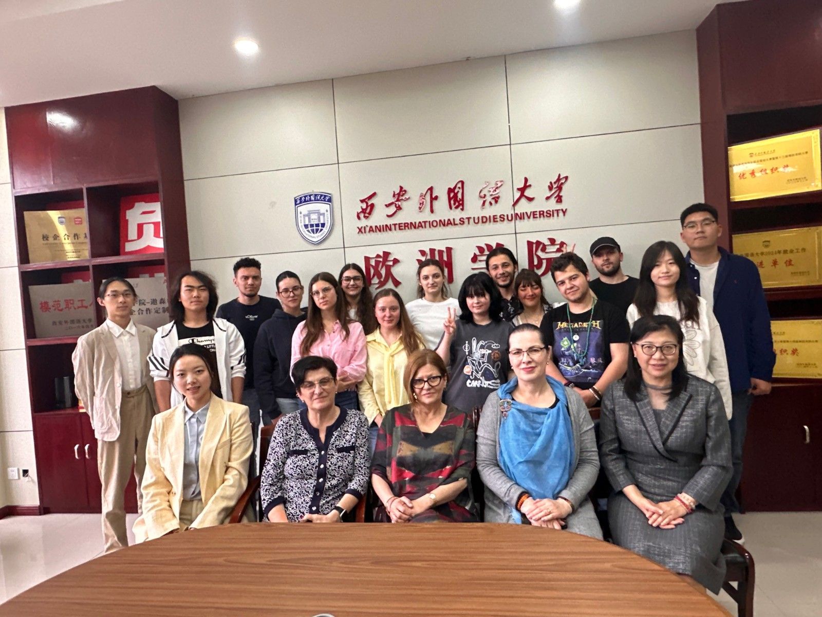 2026年4月2日下午,罗马尼亚布拉索夫特兰斯瓦尼亚大学副校长米哈埃拉·格奥尔基率团访问我校。随行人员包括该校国际处处长科丽娜·西尔维娅·米库、现代语言学习中心行政主任阿德里亚娜·弗洛雷斯库,以及孔子学院中方院长王冰。我校副校长邓滢在长安校区亲切会见了来宾,国际合作与交流处负责人、欧洲学院罗马尼亚语专业教师代表共同参加会谈。