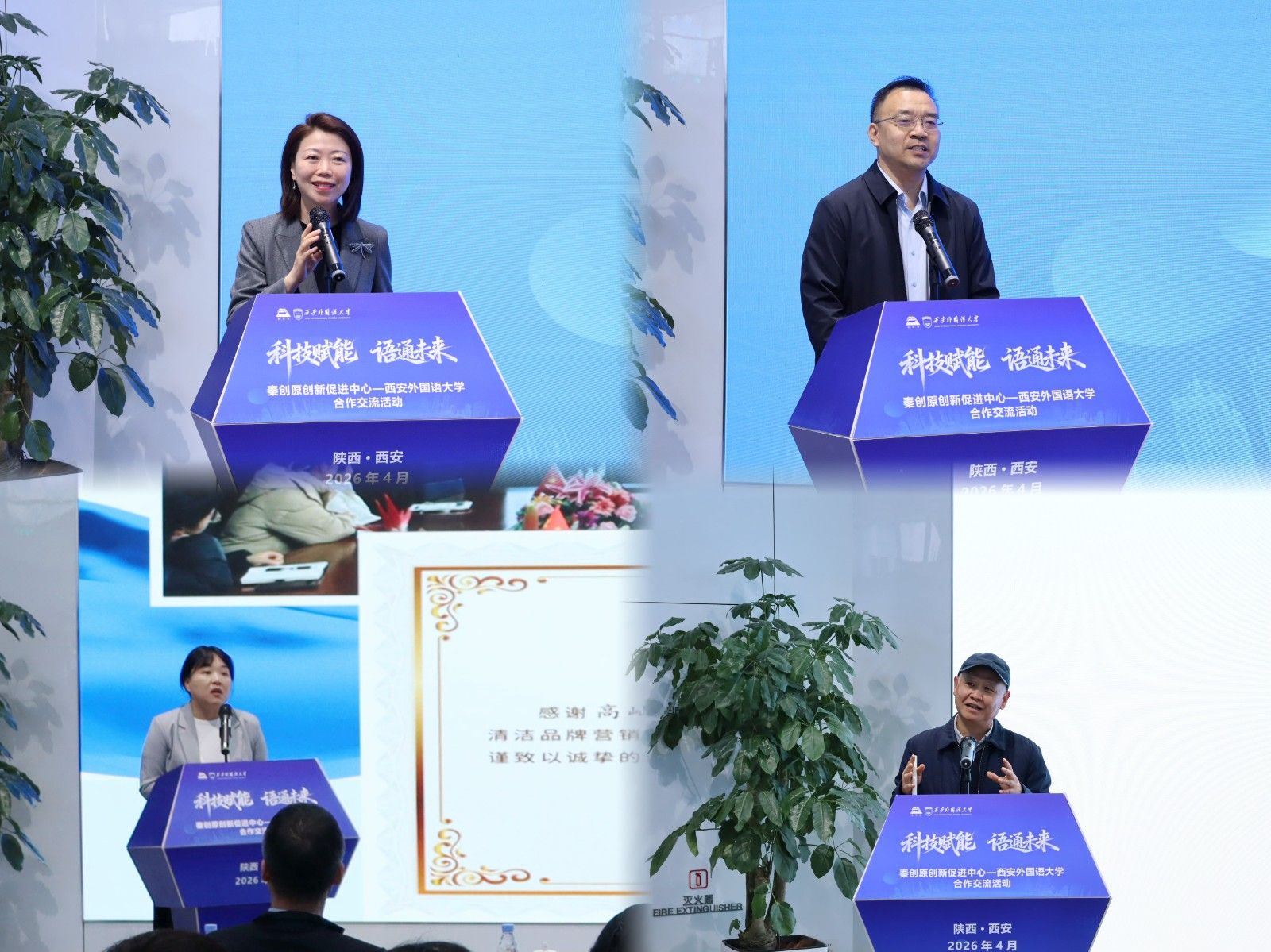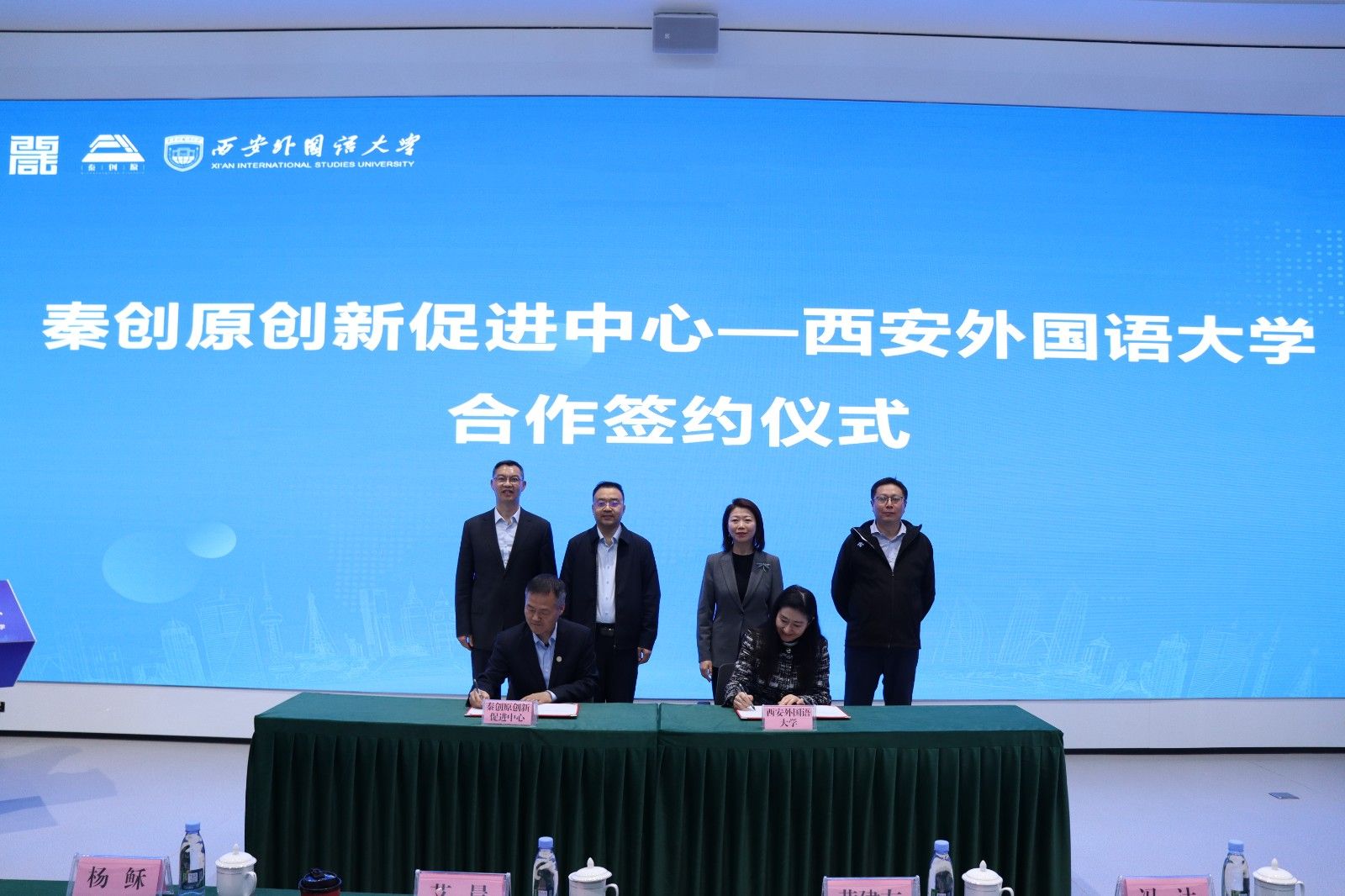 4月2日下午,西安外国语大学商学院与秦创原创新促进中心合作签约仪式在秦创原·陕西科技创新产品路演中心举行。西咸新区党工委委员、管委会副主任艾晨,秦创原创新促进中心相关负责同志及企业代表出席;西安外国语大学副校长黄建友,商学院党委书记冯达、院长耿紫珍及师生代表参加。仪式由秦创原创新促进中心副主任李利主持。