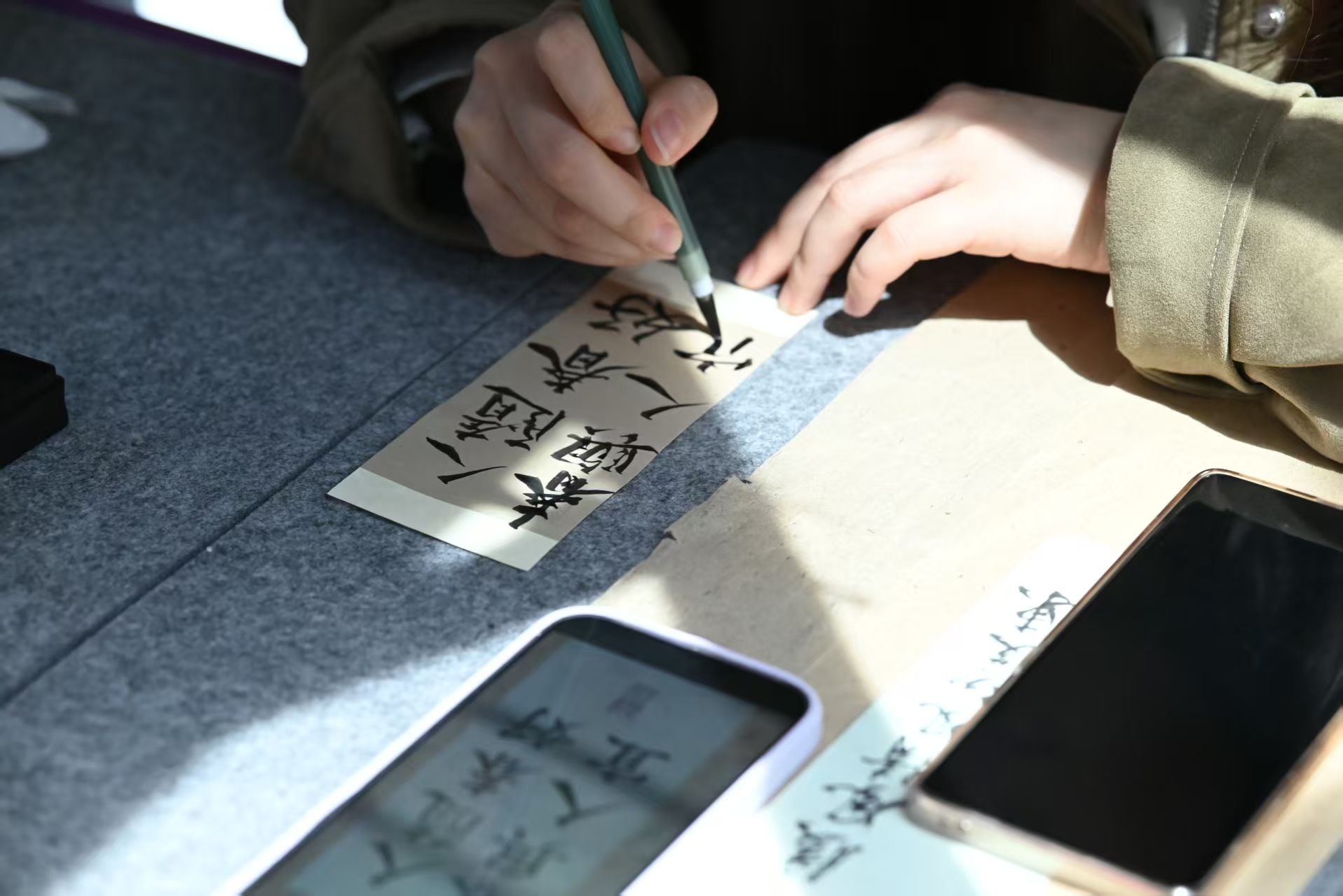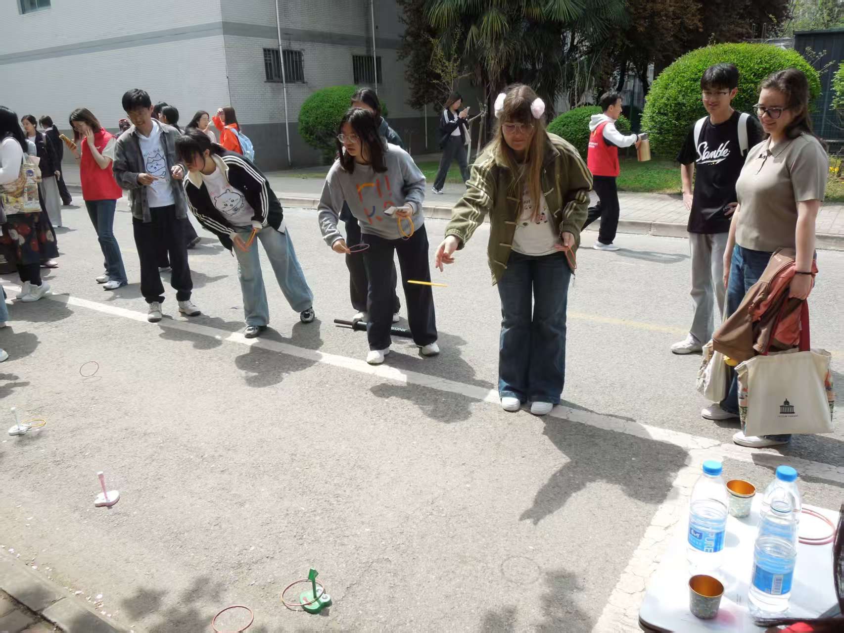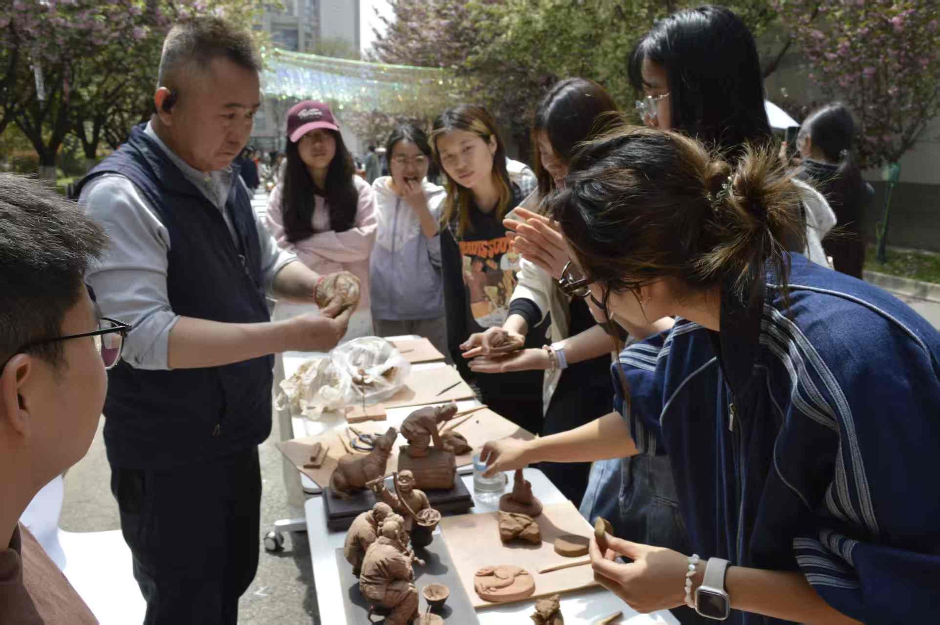 非遗体验区成为活动热门打卡点,泥塑、书法、编织等非遗技艺传承人现场教学,师生亲手参与技艺制作,在实践中体悟匠心精神与东方美学。与此同时,投壶、射箭、“风华阵”汉服打卡、“登高台”观景赏花等特色环节更是人气爆棚,师生积极参与互动集章,兑换专属精美文创,参与热情持续高涨。