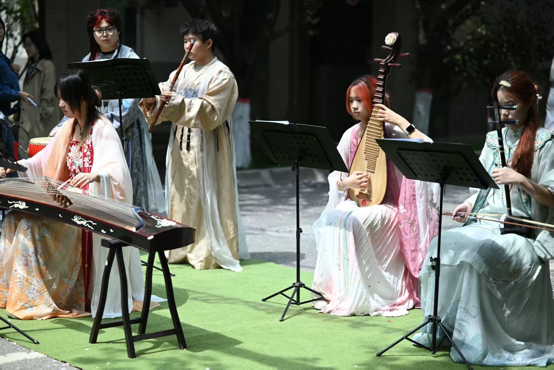开幕式上,我校大学生艺术团带来的古风民乐演奏,用婉转悠扬的乐曲奏响了春日序章。西安考古博物馆受邀携多件珍贵文物走进校园,搭配专业文物讲解,打破场馆限制,让师生近距离感受古都长安的历史文脉和传统文化的厚重底蕴。