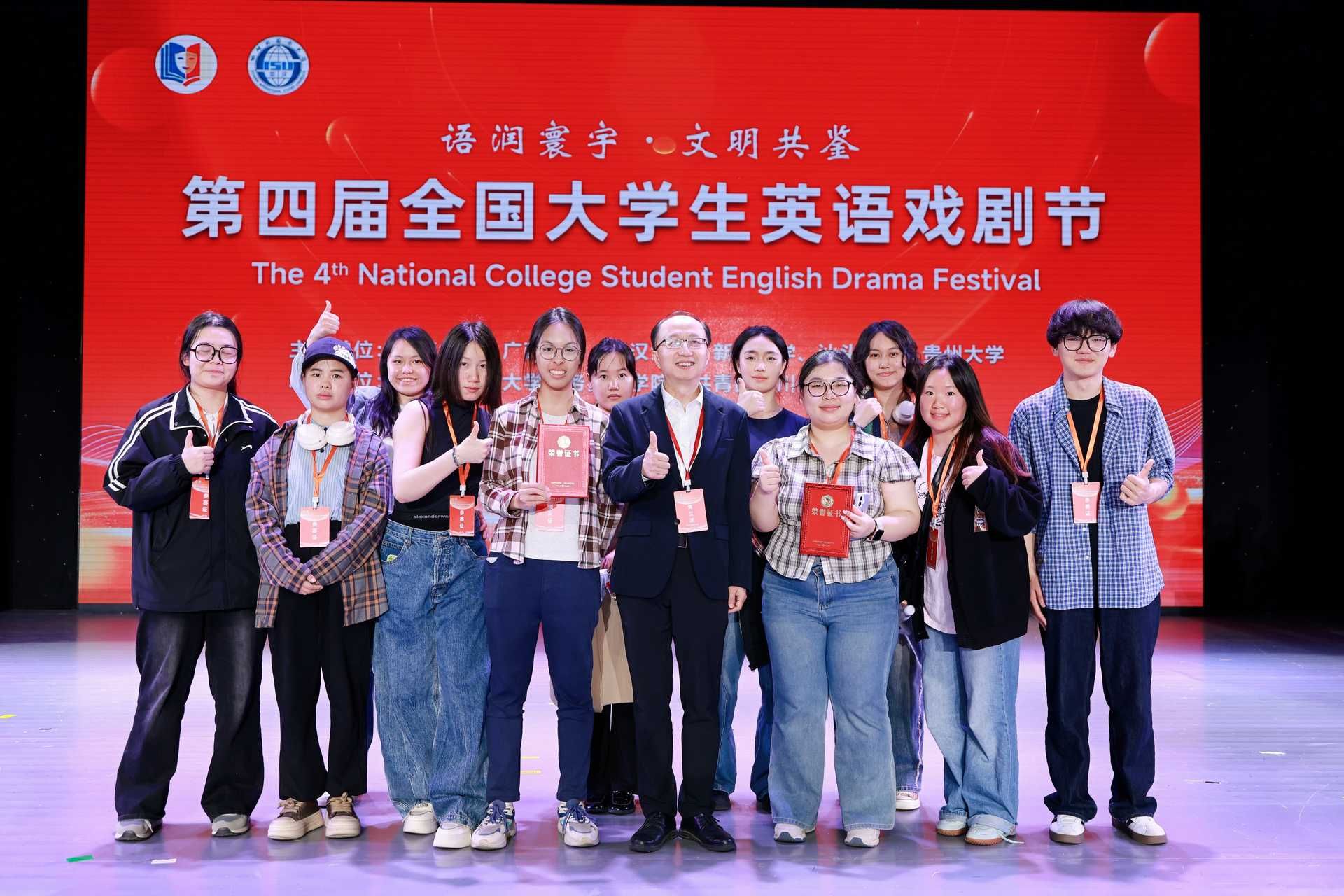 4 月 12 日,第四届全国大学生英语戏剧节在四川外国语大学圆满落幕。西安外国语大学英文学院戏愫音乐剧社凭借剧目《来自远方》,以精湛舞台表现力与扎实专业英语能力,斩获全国一等奖;指导教师刘田、王瑞芬获评优秀指导教师奖。
